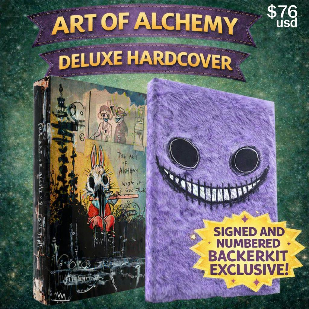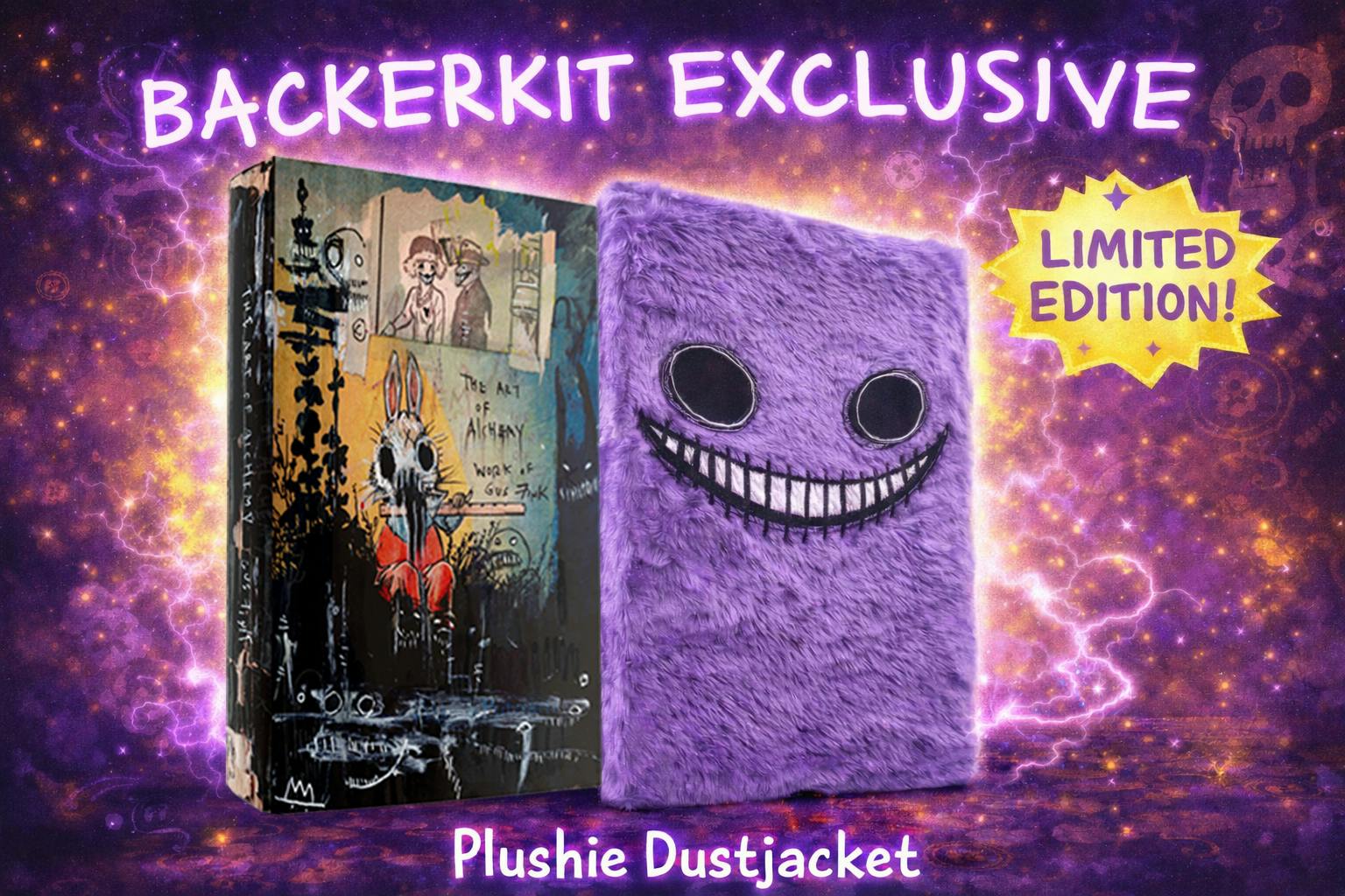 To commemorate The Art of Alchemy, we’ve created a BackerKit-exclusive Plushie Dust Jacket—a one-of-a-kind collectible designed specifically for this book and only available through this campaign. The plushie dust jacket gives the book a bold, unmistakable presence—instantly recognizable, impossible to mistake for anything else on your shelf.