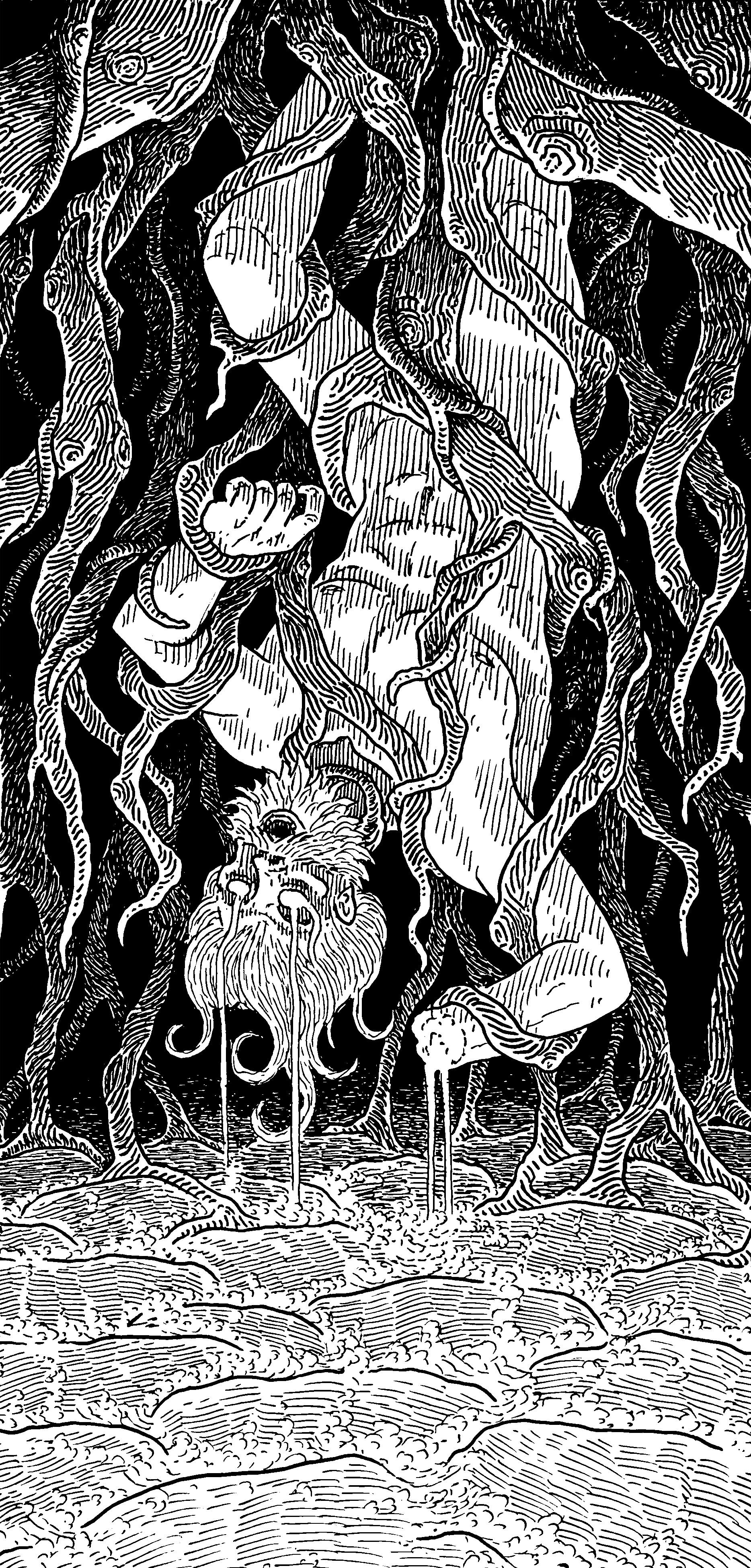 Here's Kvasir, the Demigod of Mead and Poetry, imprisoned in the eikrót and generally not having a good time.