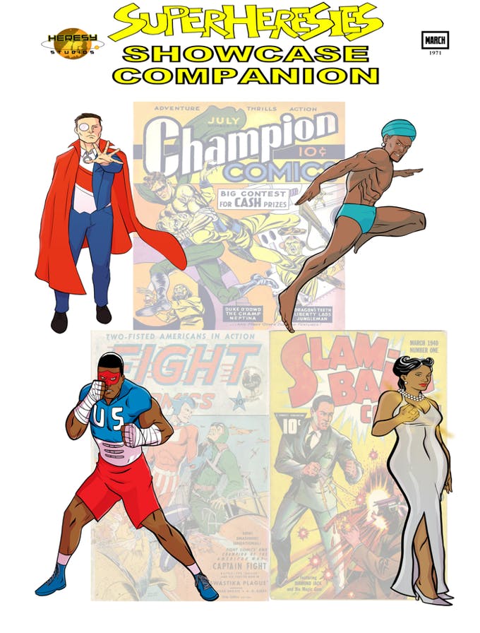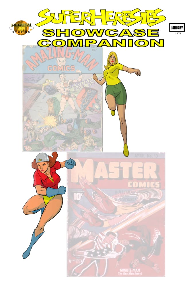 Everything your brother-in-law needs. SUPERHERESIES SHOWCASE 1974, SUPERHERESIES SHOWCASE 1974 COMPANION, SUPERHERESIES SHOWCASE 1971, SUPERHERESIES SHOWCASE 1971 COMPANION, THE ORDER OF DRACULA VOLUME I, TWO-EYED TALES OF DRACULA, TWO-EYED TALES MAGAZINE, BULLETPROOF CHICKEN, NERD NATION PRESENTS # 2, and THE ADVOCATOR PRESENTS SUMMER and WINTER EDITIONS.