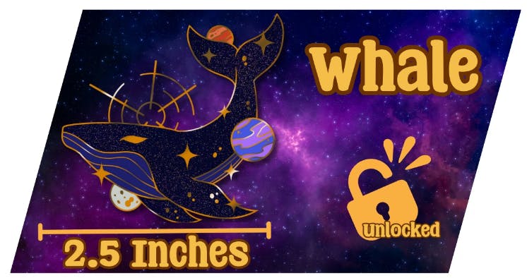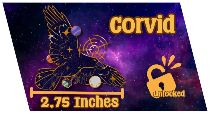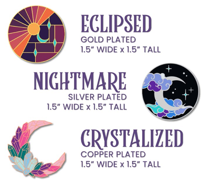 ...Starting of course with my amazing cross-collab partner, Wayward Enigma Designs! It's so hard to choose just one pin from WED's campaign, so I picked 2! I find the whale to just be so awesome and beautiful, and I'm of course a sucker for anything with corvids. Make sure to back WED's campaign Celestial Beasts to unlock freebie pins from each of us! 🌟