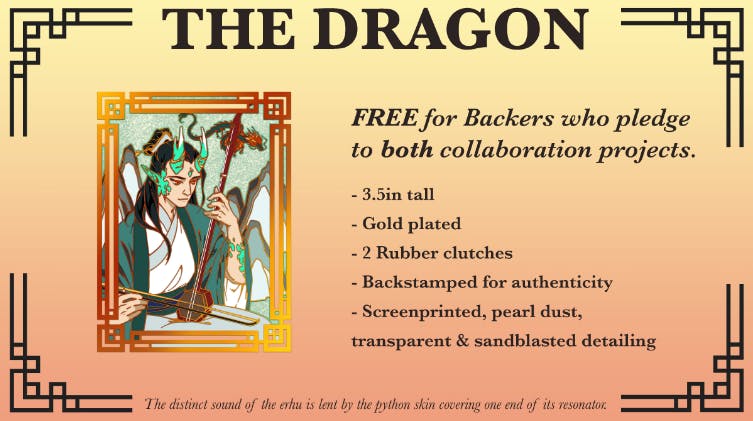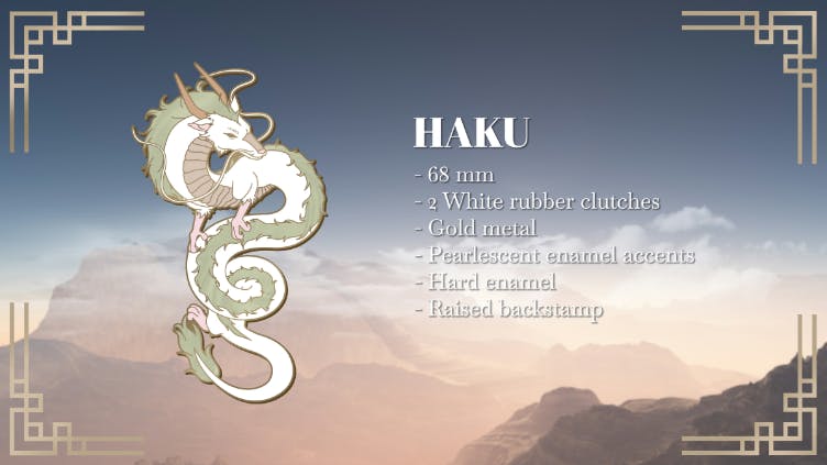 Next up is kittyalist's cross-collab pin The Dragon. He's just...he's so pretty, I don't know what else to tell you! Look at him! He's just so handsome and I love the peaceful vibe of this pin. Next to that is their partner's campaign. All Xiumai's dragons are stunning, but with Spirited Away being a childhood favorite, of course I am drawn to Haku!
