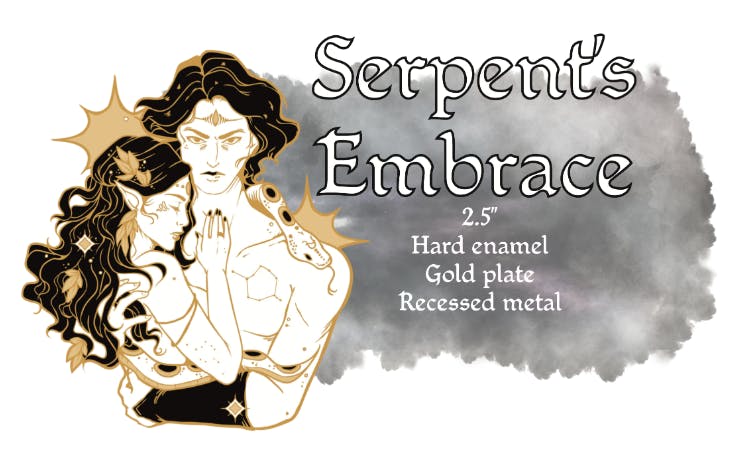 Next up we have Corvus from Fox & Crow Studios' Celestial Companions! As usual I'm sucker for corvids. As for Arcane Moon's Zodiac Goddesses, my favorite pin is actually the Serpent's Embrace, which isn't even part of the main set, but I can't help but be drawn to romantic art especially with a pretty man!