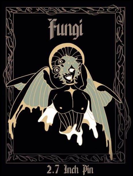 I cannot go without mentioning Crimson Chains and Kaizuart! I ADORE both their campaigns, and it was very difficult just to pick one from each, but I love the drippy look of Crim's Fungi pin and I already love Kaizu's OC Noctifer so I had to show him off!