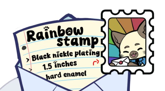 I can't let you get through this update without shilling one of Foxpirate's adorable postal cat pins! The rainbow stamp is one of my favorites from his campaign. Next to that is some adorable pride flags designed into ribbon candy! These are so cute and clever and I am a big fan of them, and I wish I could eat these in real life! Got some good LGBTQIA+ vibes with these two pins.