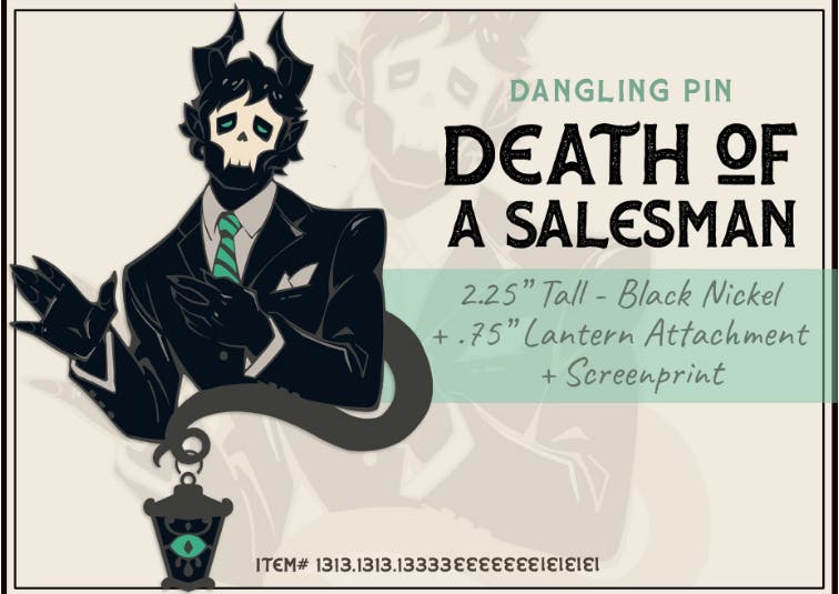 First up on the pretty boy train, one of my absolute favorites is Kira Night's Death of a Salesman pin. I was OBSESSED with their campaign last year and this year is no different. I am such a huge fan of all their hot spooky shadow men. It's like they looked into my brain and drew exactly what I want to see. He's so hot 😩 Then next to theirs we have Abysmal Kaiju's Sea Serpent mermaid. I LOVE that he has some low-key sexy vibes, and I love his twisty body! Truly a couple of my favorite pins this year overall!!