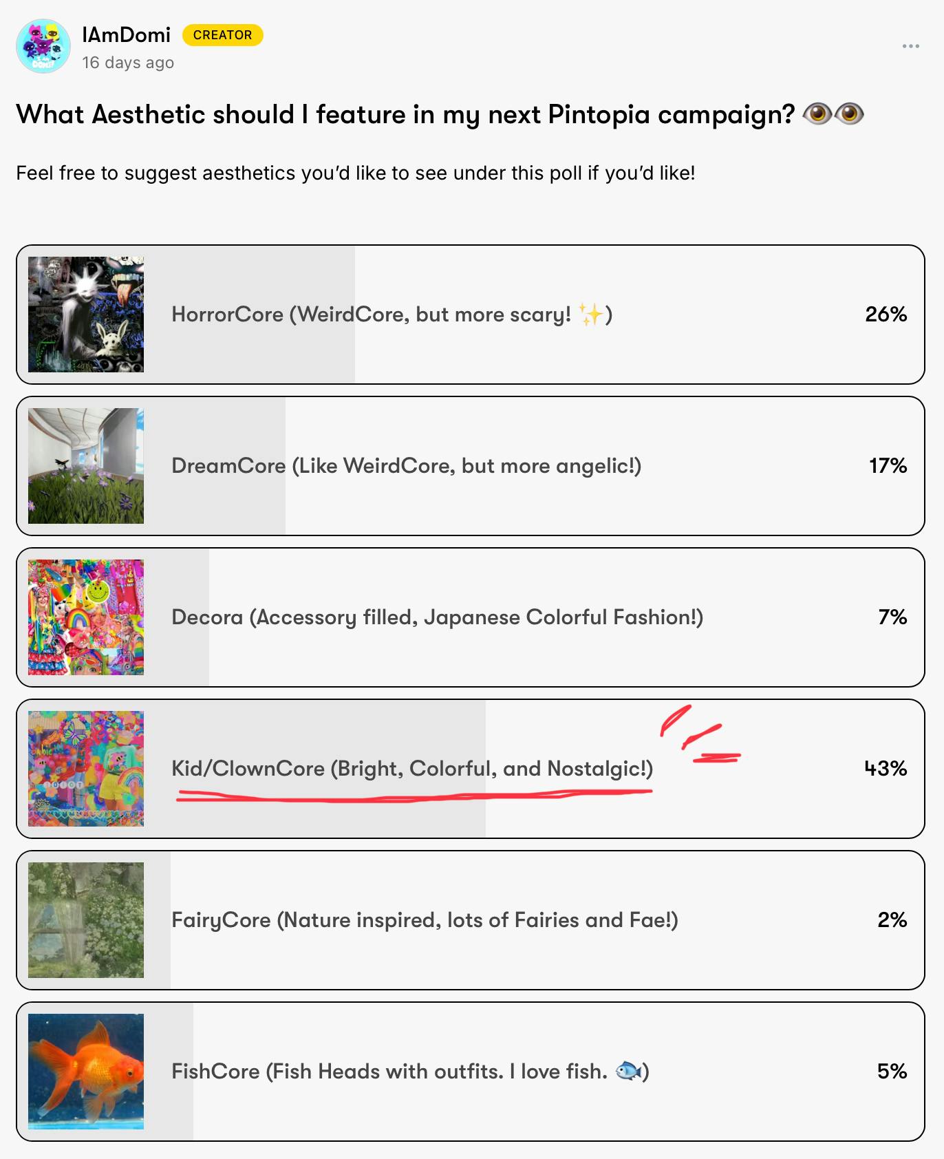 Our poll for our next large, aesthetic themed, pin campaign has ended, and KidCore won! I have so many ideas for this campaign! Don’t worry, I will be bringing the other themes back for future campaigns I also have a poll for our next small, in between, campaign to vote on the animal that it will feature! Check in out and vote. —> Here! So the order for our next campaign is the animal themed one and then the aesthetic themed one, so stay tuned!