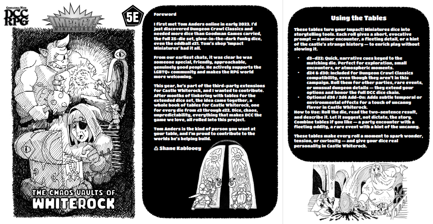 Chaos Vault of Whiterock PDF with 34 pages of random tables for dice D3 to D30