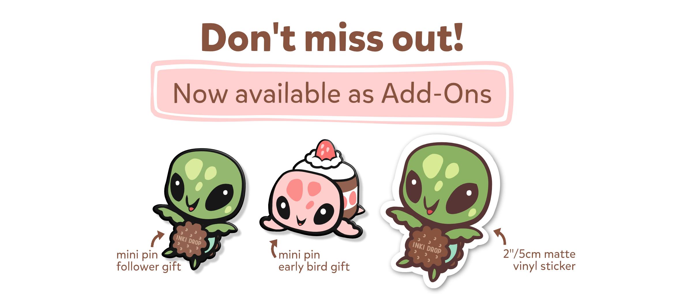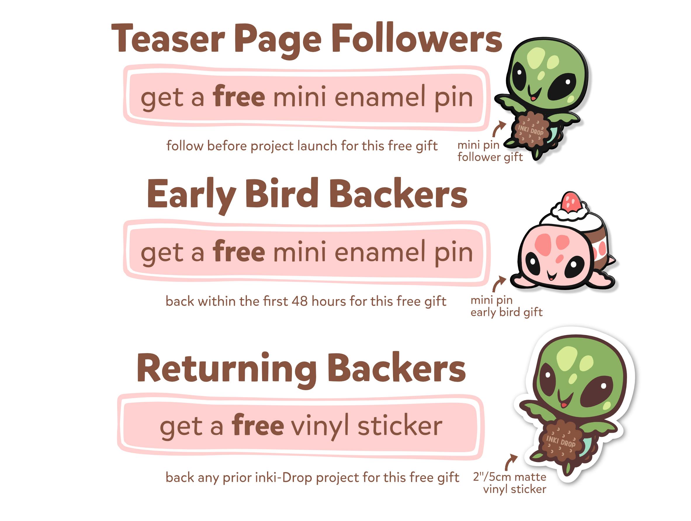 Back both of our projects and receive the following Cross-Collab Freebie Pins. I designed Baby Pudu to match Milkbun's MAGIC FOREST Make A Scene Kit. Back us both, and you'll receive both cutie mini pins.