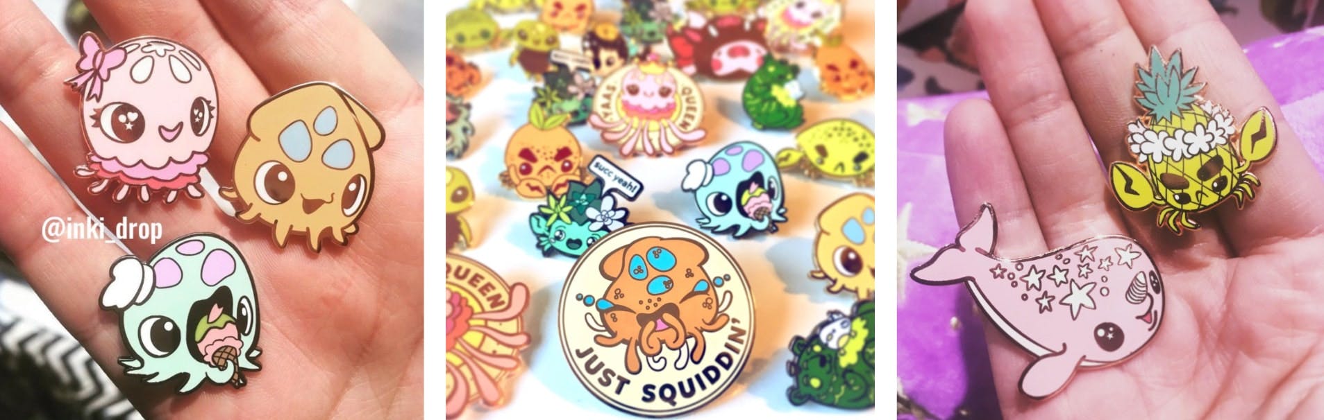 My name is Shelly, and I'm an American illustrator based in Spain who works under the alias inki-Drop. I adore all things ocean-related and have designed many plush, pins and more over the years.