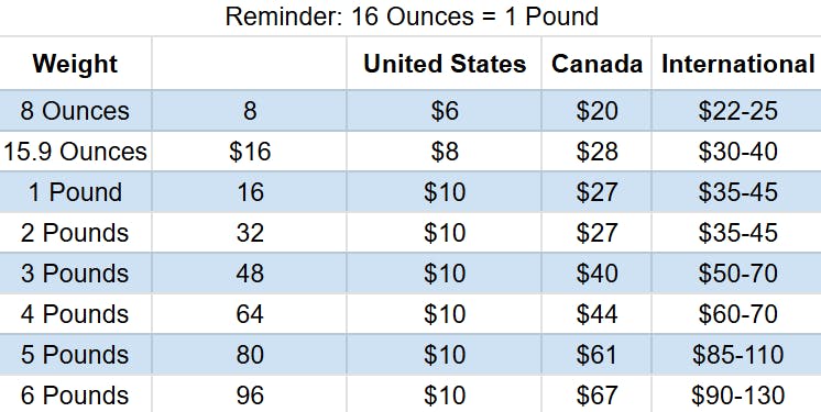 Here’s a general breakdown on how much you can expect to pay for shipping based on the weight of your pledge. I have added estimated weights and shipping costs to all add-ons and pledge levels, so if you add those all up you should have a decent idea of how much shipping will cost. International Shipments: Please make sure you are aware of your VAT tax, tariffs, and customs for your country! Every country is different so we can’t estimate how much these extra fees will cost. We also declare the full value of your shipment on the Customs forms. We will be typically be shipping within the USA with USPS and Internationally with FedEx.