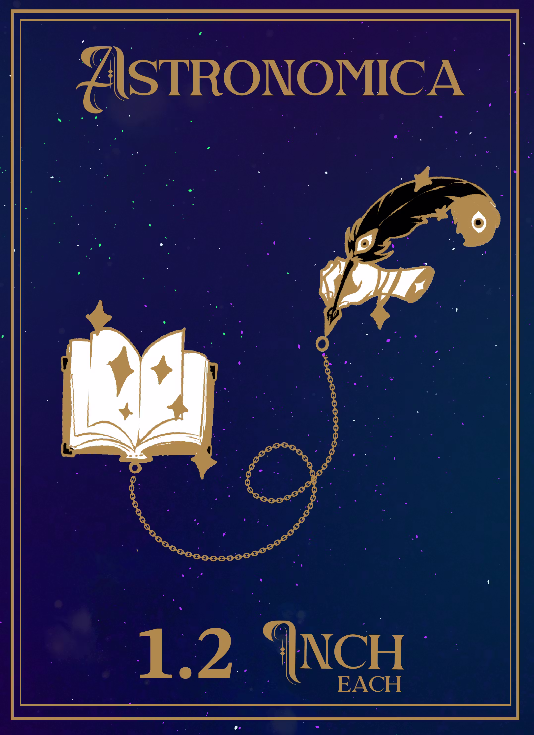 The Astronomic Pendant is an eldritch angel with astronomy aesthetics. It will be 1.65 in (42mm) tall, made in antique gold and antique silver. Does NOT include chain. See the videos for examples of it working!