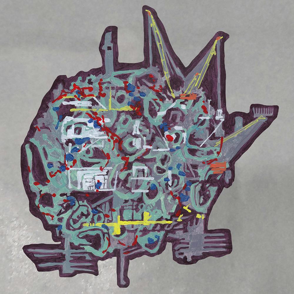 Kidney Slice + Water Treatment Plant: this painting features the large circular sedimentation tanks seen in water treatment plants; the kidney removes unwanted waste from the body.