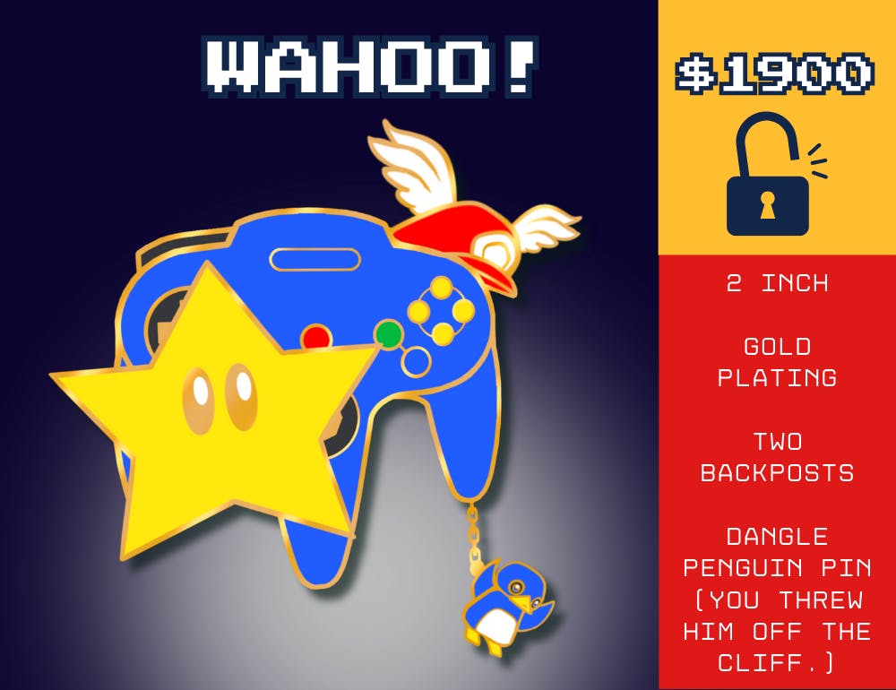 This campaign strives to encapsulate that nostalgia into pins! Each pin features icons from the games surrounding an N64 controller themed to the game itself. Some are even with references to special edition controllers!