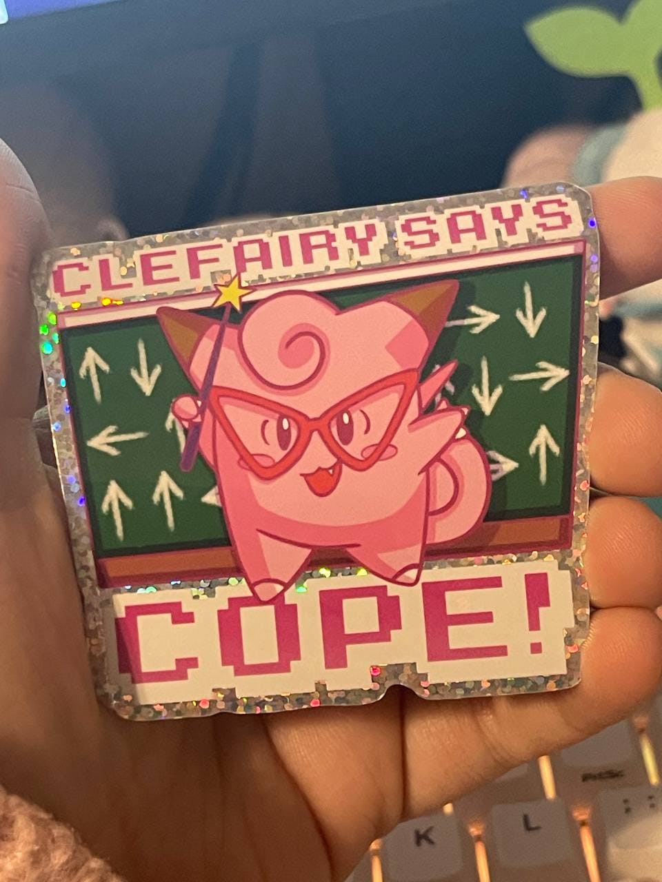 I'm also excited to show off two of the stickers from this campaign that have been delivered to me! My manufacturer ran a sale on stickers for New Year's, so I ordered them ahead of the campaign. I LOVE how they turned out -- the Clefairy Says Cope sticker in particular has my entire heart!