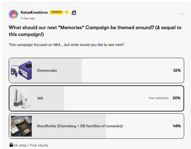 In the last update, I included a poll for what you guys would prefer for a sequel campaign. I'm excited to say that handhelds have dominated that poll with almost 50% of the vote!