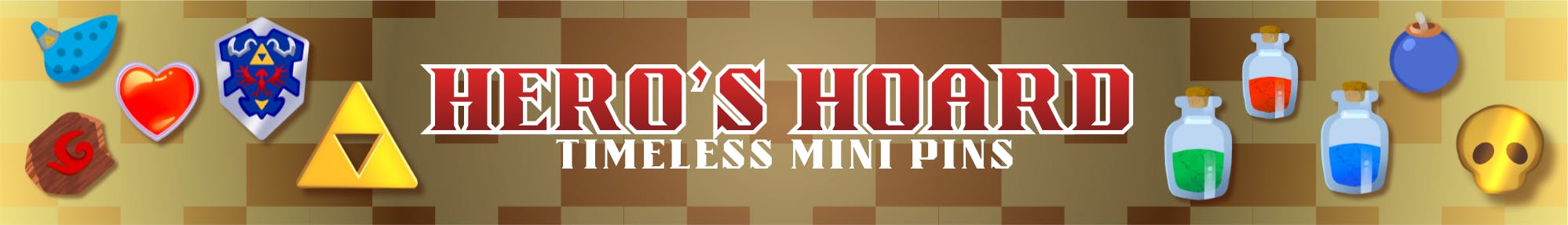 Then, in August, I'm launching Hero's Hoard: Timeless Mini Pins -- a Zelda/OOT themed set of mini pins featuring items from the game in my style! This is a part of the Pocket Change Group Collab! Check it out HERE or by clicking the banner below!