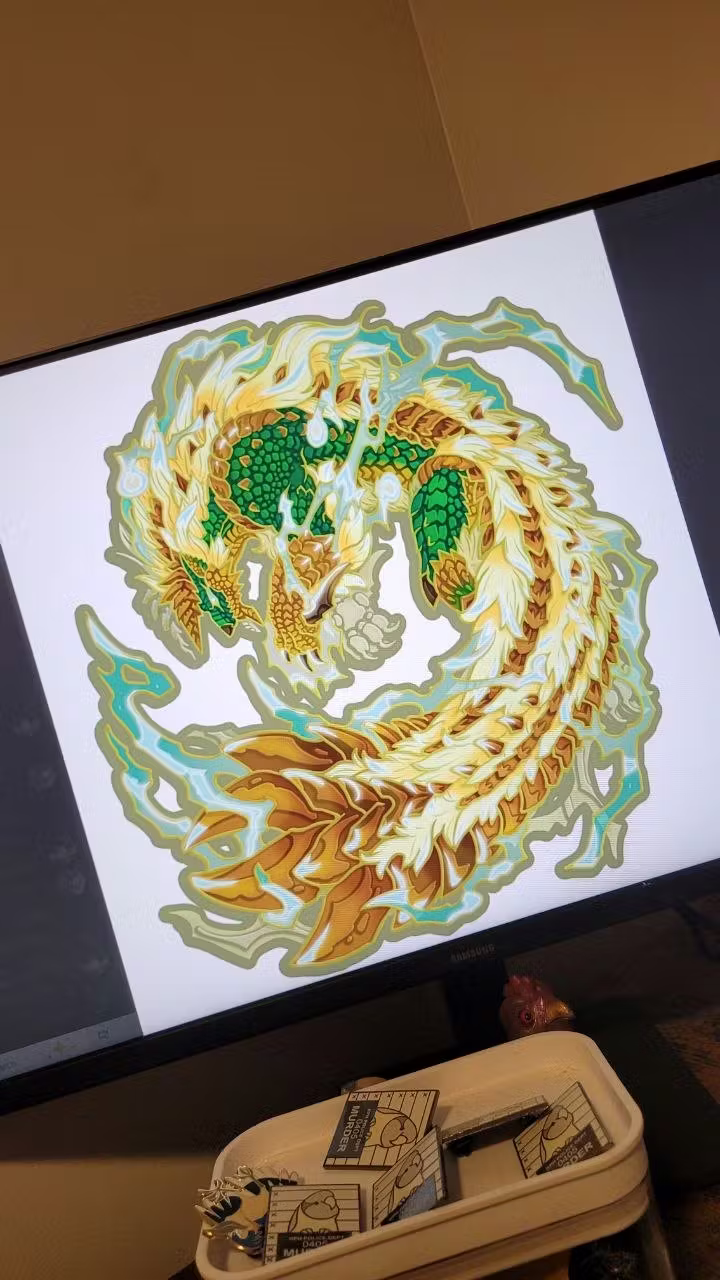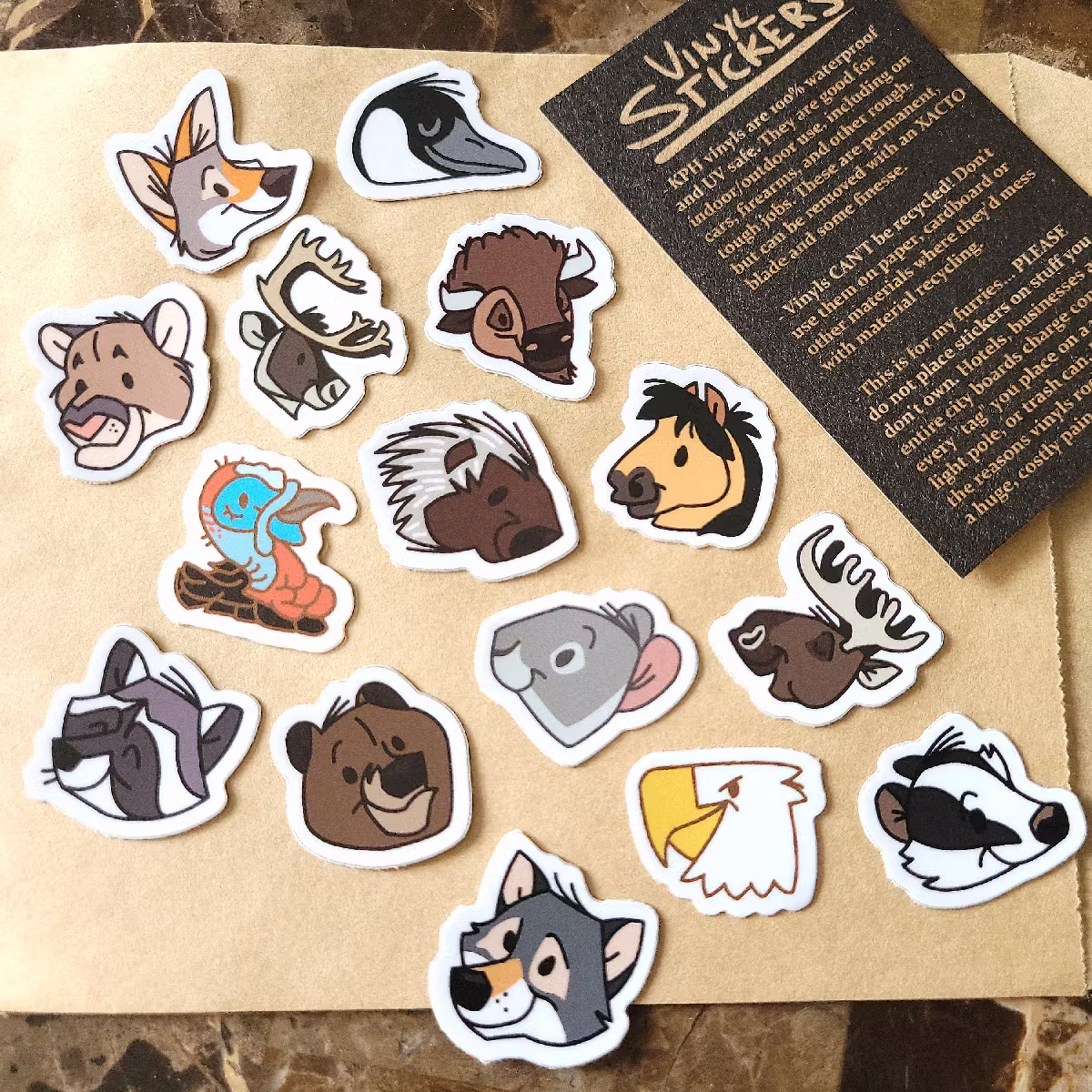 - Stickers have been formatted, and ordered! We don't have an ETA on them yet, but, mercifully, most designs use the same outside cut path. Same plan, once these arrive, they will be assigned to packing slips before pins arrive.