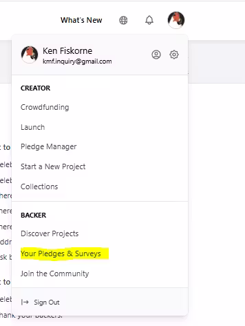You can check all your pledges and surveys through your BackerKit profile here. This is the easiest way to complete, check, or change surveys for any project.