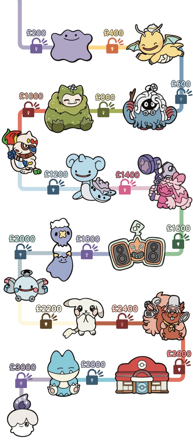 The initial goal for this campaign is to unlock the first design of this collection. The additional goals aim to complete the collection by unlocking the other designs. There are then unlockable extras which are the stretch goal pins.