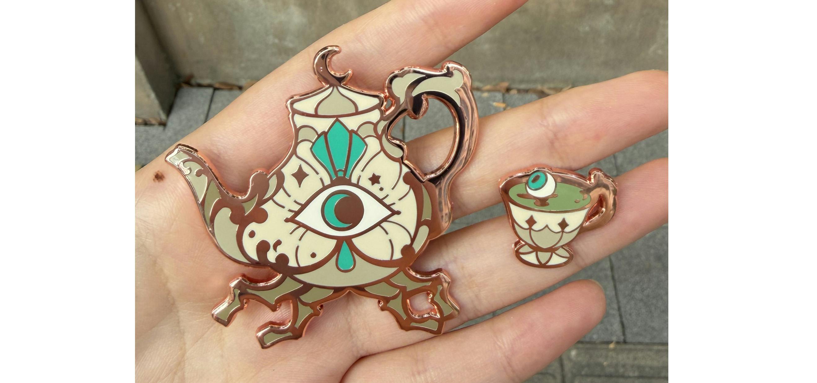The teapot and the teacup mini pin have samples made, and they are so cute. I'm so happy with how these 2 are looking, and the copper metal is a perfect fit for this color scheme.