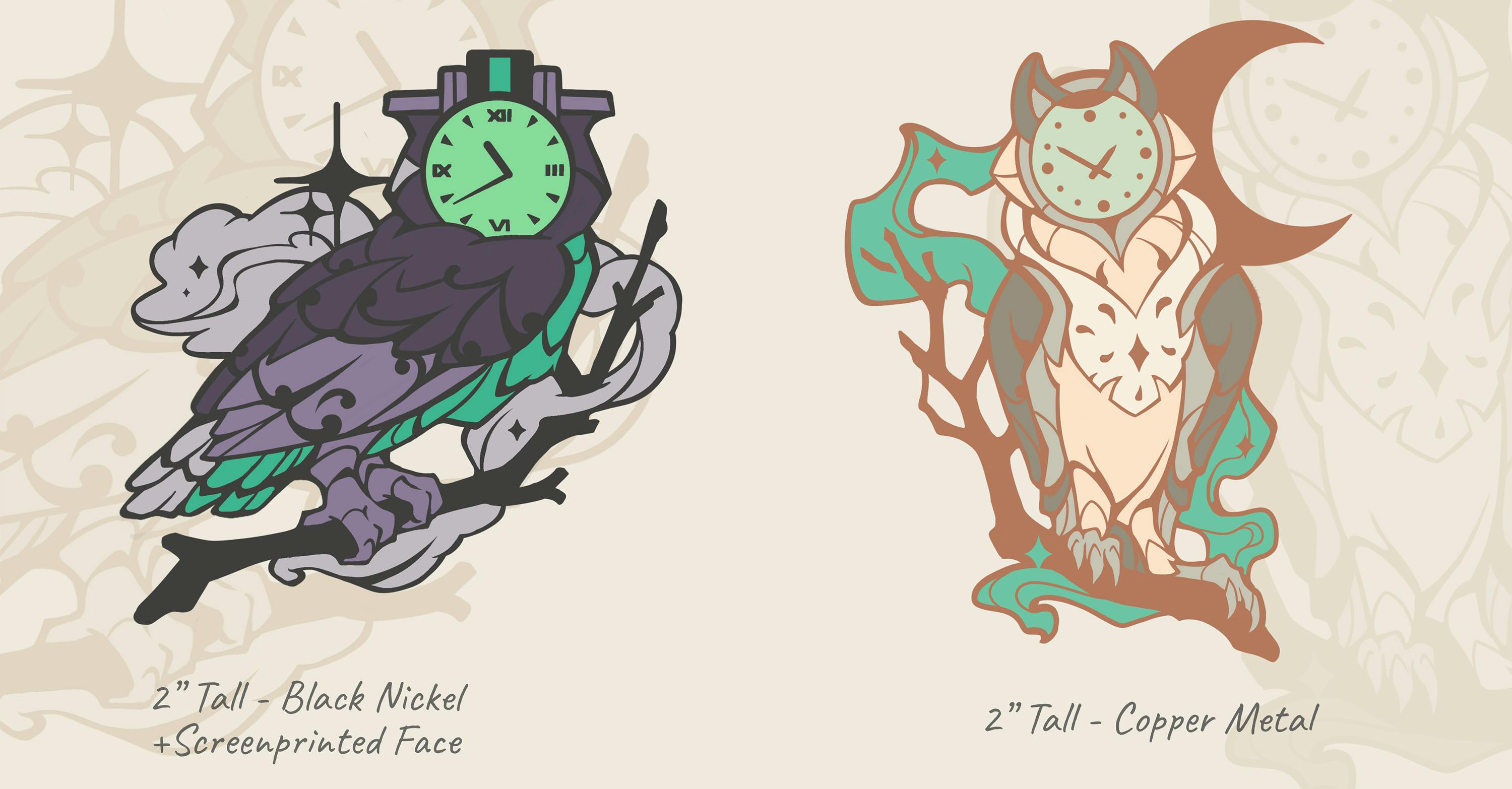I spent a bit of extra time this week putting the finishing touches on these two! The dark owl will likely need the clock face screen printed, but I am hoping to get away with the light owl's clock face being metal. Of course, if the face needs to be printed, I'll make an update letting everyone know!