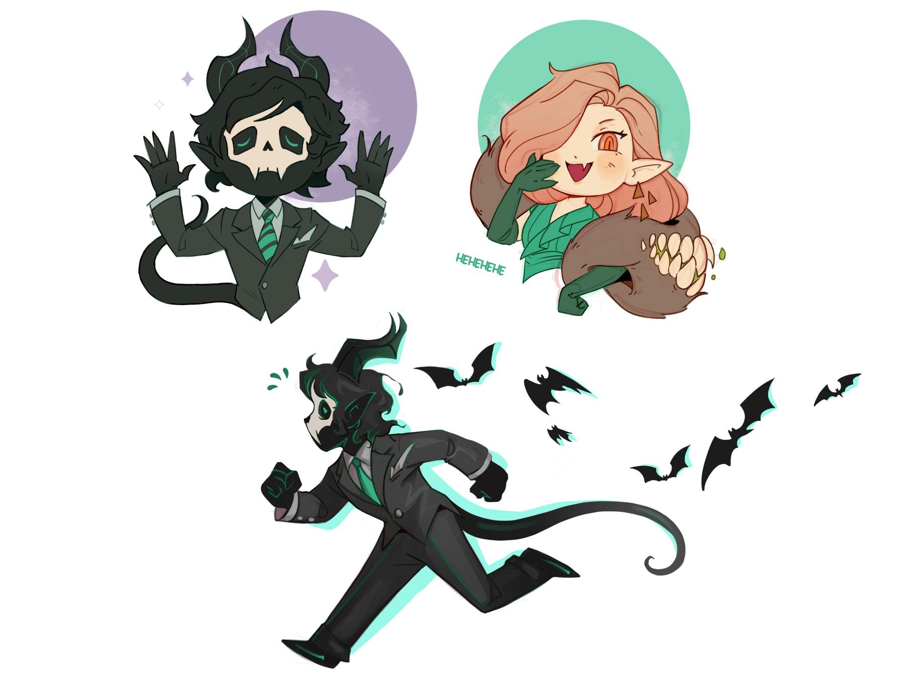 I've got some cute stickers in the works, as I am a sticker fiend. These little guys are a still a rough draft and will probably appear on a new sticker sheet, but a die cut version isn't out of the question. They'll get cleaned up and will likely have a couple more friends joining them to make things feel more complete.