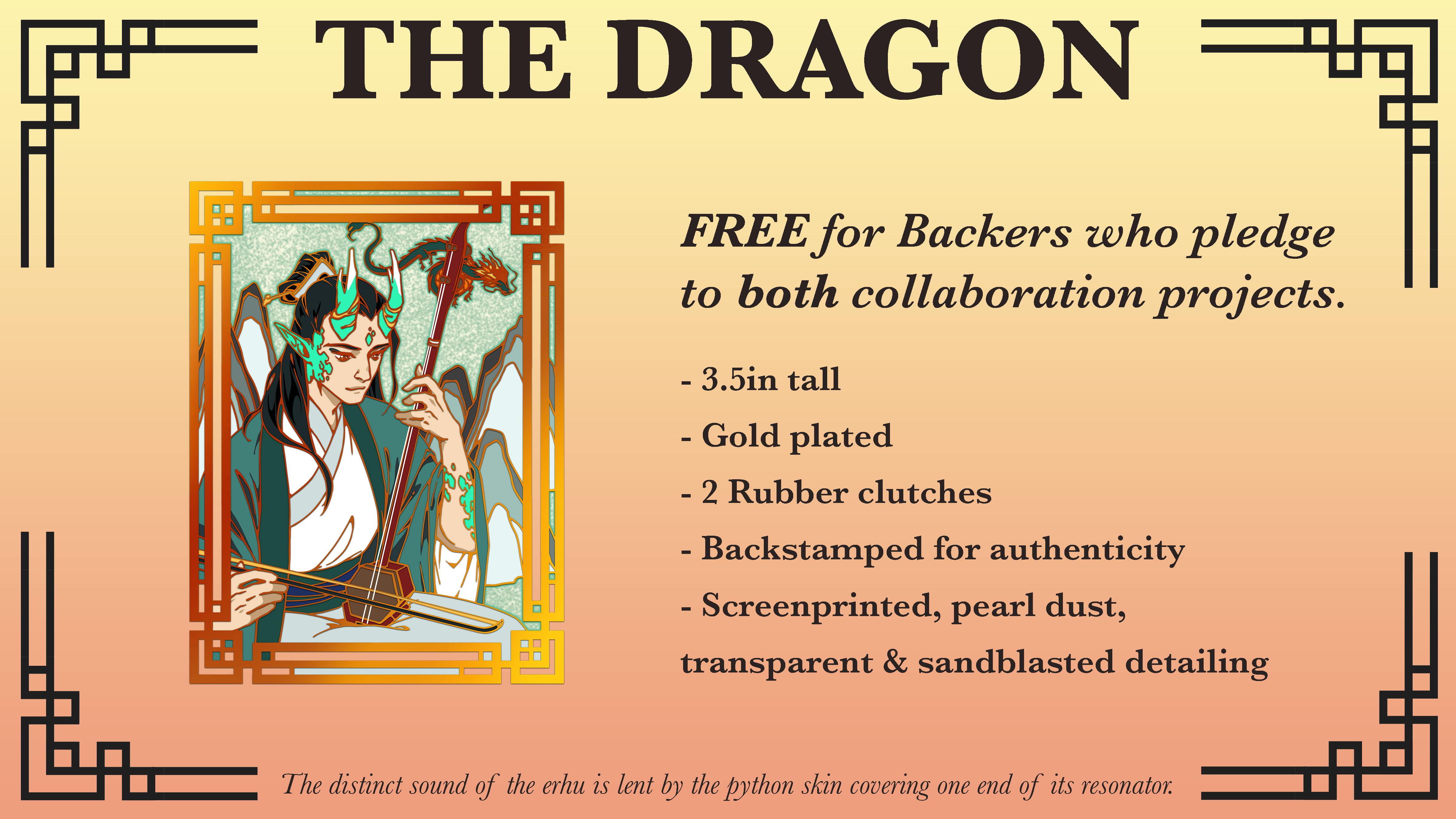 These pins are offered during the campaign at an exclusively discounted price starting at $60cad per pin. The full set of designs, including The Dragon, is available only by backing both projects in the kittyalyst & xiumai Pintopia collaboration.