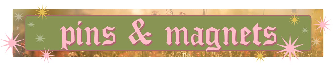 ⭐️There will also be small enamel Knick Knacks. These are all between .75"-1", mixed metals (check the image), and you can choose if you would like these to be enamel pins or magnets. Choosing the enamel pin option means they will have 2 posts (when possible). Choosing the Magnetic option means they can be used to stick to one of my bookshelf enamel pins (there is one in the add-on section), or anywhere else magnets work.