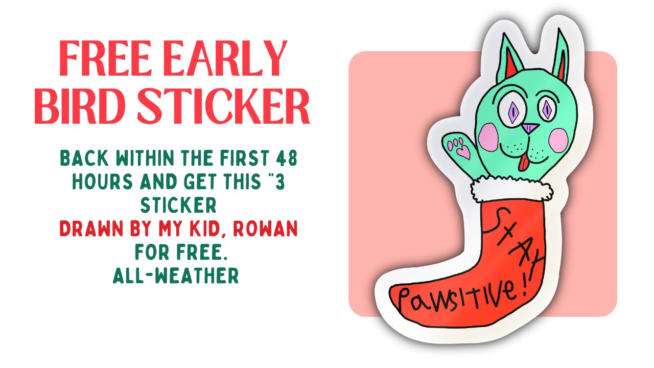🪩Early Bird orders within the first 48 hours will get a free "3 vinyl sticker (designed by my kid a few years back) 🪩 Returning backers get 1 random sticker 🪩 Early followers of this project get 1 random sticker