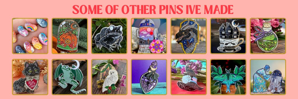 🪩I have been designing pins for 9 years. Pins are taking over my life, my space, my entire house. Theyre in bins and boxes, shelves and piles. Help me clear up some space and get a lovely holiday gift package at the same time.
