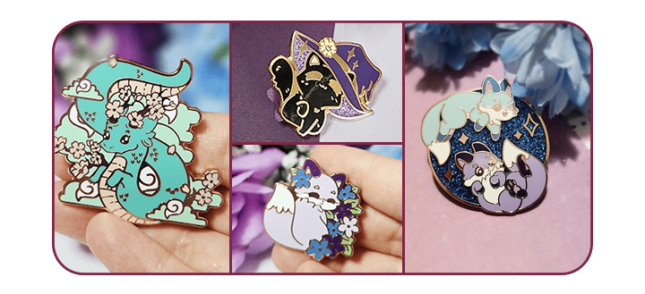 I started Lilac Fox Studios in late 2023, and have designed a wide range of cute things since—from lanyards to keychains, pins, art prints, apparel, and of course... enamel pins!