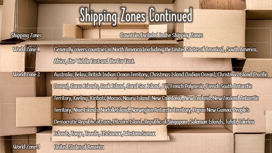 We are making every effort to keep the cost of fulfilment as low as possible. If your location is not listed in the tables above and below, please send us a message. We will happily look into the best shipping option and provide further information.