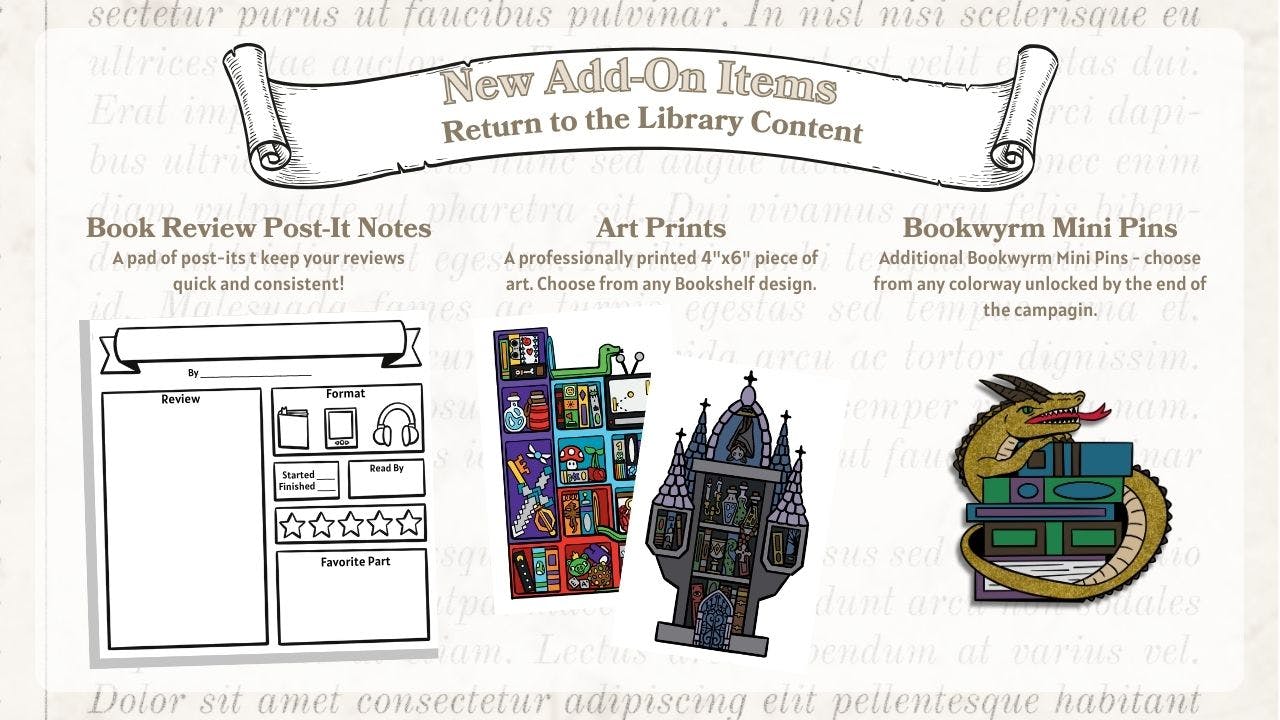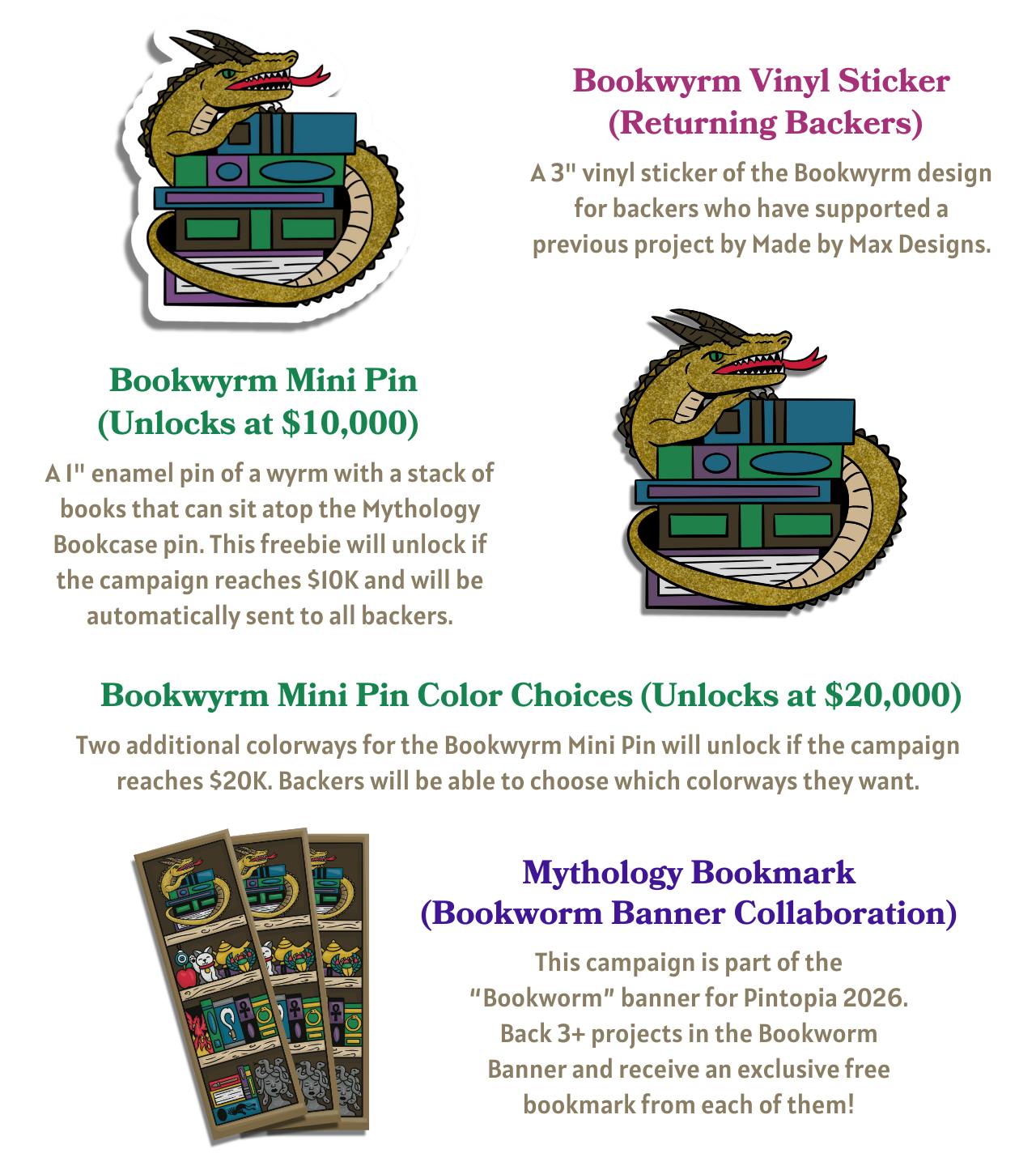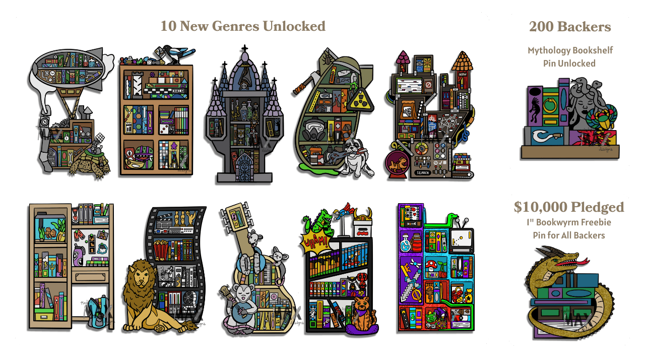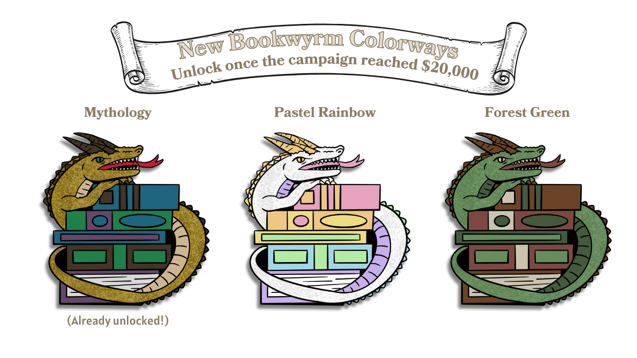 - A free Bookwyrm pin for ALL backers ($10,000 achievement)