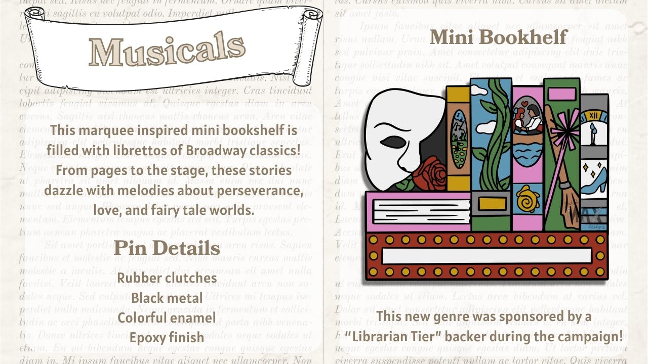 If you're also excited about the Musicals genre I have a Broadway inspired upcoming project: Musicals Mini Pins!