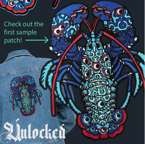 The lobster pin design from Abi Stevens Art is cool... but the embroidered patch version is AMAZING!