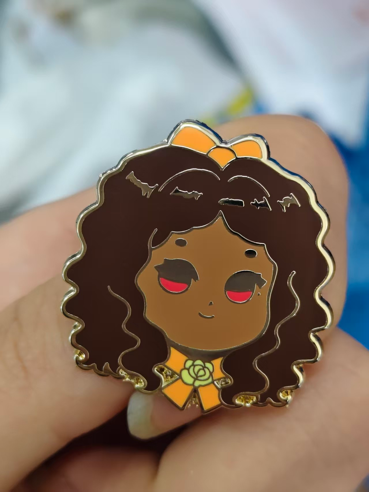 As for enamel pins, since they are all ordered in bulk numbers of 50 a design and have faster production, they will be shipped to me next week! I have included some photos below and am so happy with them! They are adding the blush colors for both Claudia pins currently. Plushies go into bulk production within the next week as samples are finished up, too!