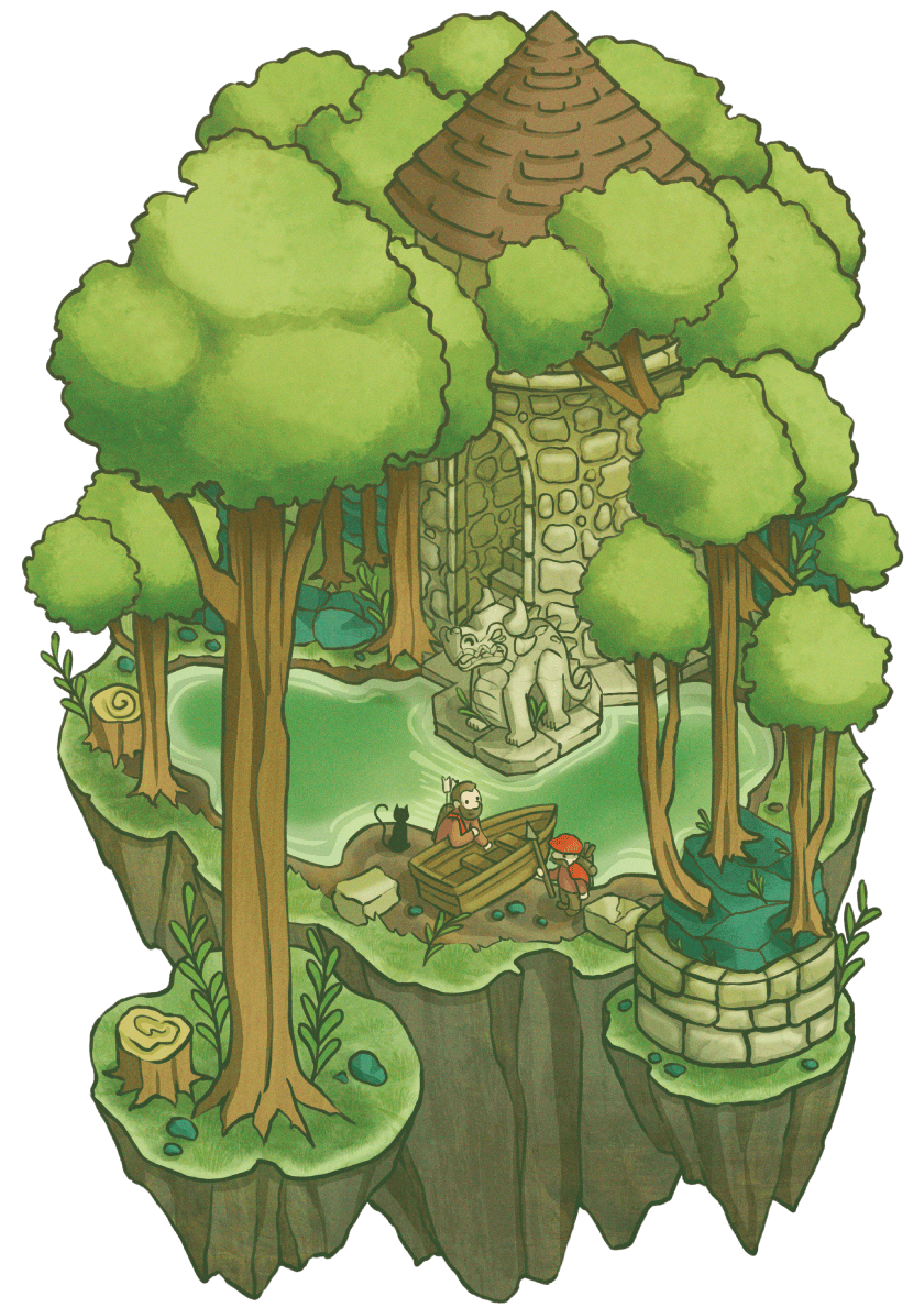 Next up on the block as our $4000 goal is the art of Verdant Harbor, the beauteous ruins hidden along the water within an ancient forest. We're still cooking on the isometric pin version of that...but the sketches are already looking *chef's kiss*.