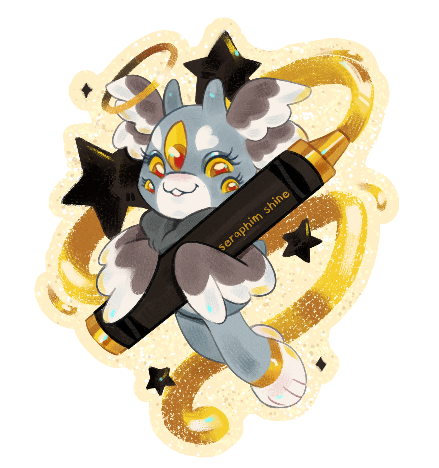 This design will be available as a sticker and a keychain! Both formats will pack a shiny, glittery punch to really accentuate their lovely golden glow. Aren't they just adorable? 🥹