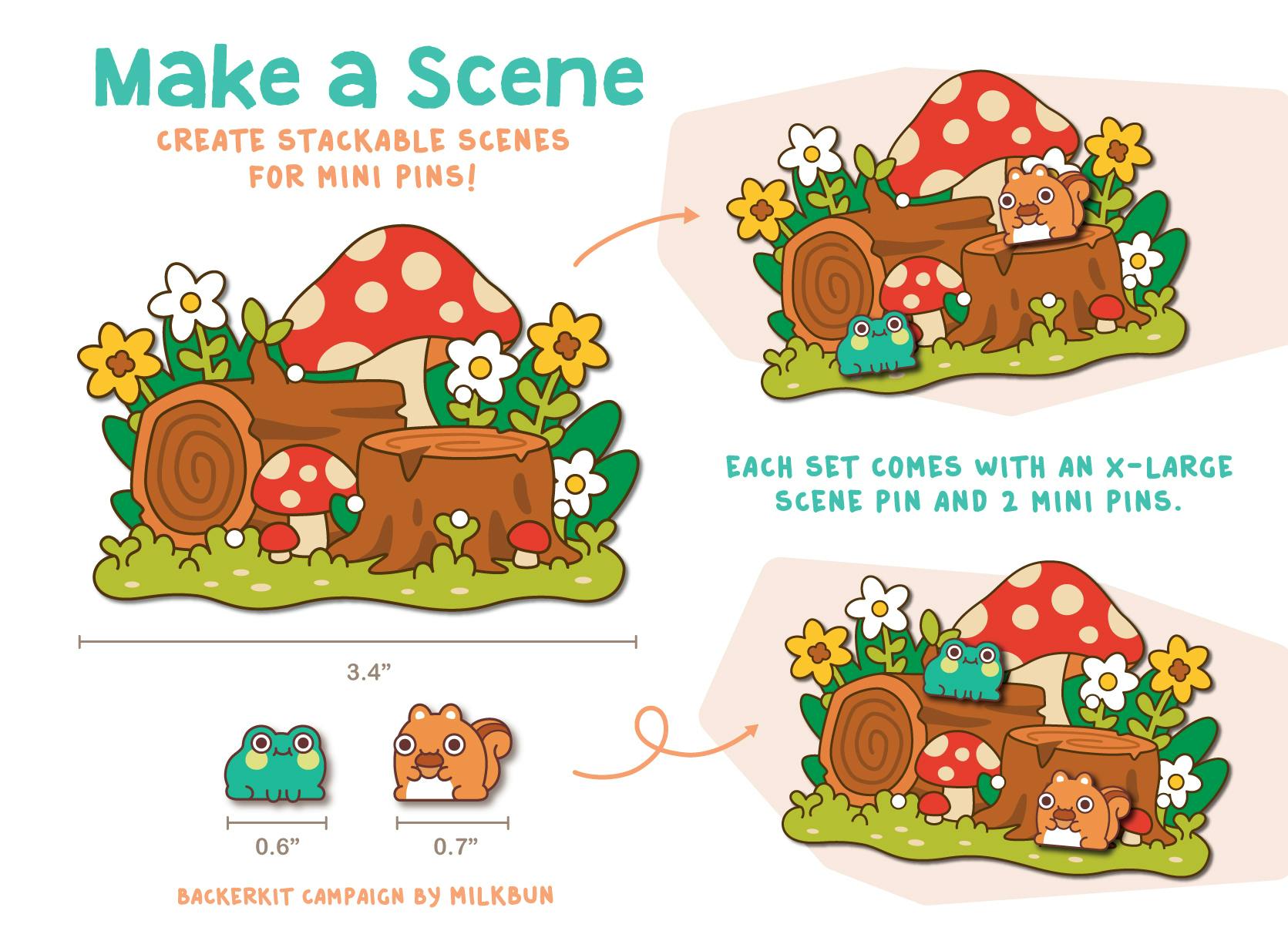 The first goal is a Forest Kit that includes an XL scene pin and 2 mini pins to move around to whichever holes you'd like. Extra mini pins that fit the theme will also be available but the great part is you can use any mini pins (or pins) you own!