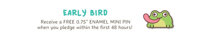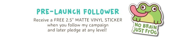 If you've already followed my campaign, thank you so much, I really appreciate it. You already qualify for the free sticker if you make a pledge! And if you make the pledge within the first 48 hours, you'll also receive a FREE silly forg mini pin too! These frogs might look silly but they are non-apologetic about their looks.