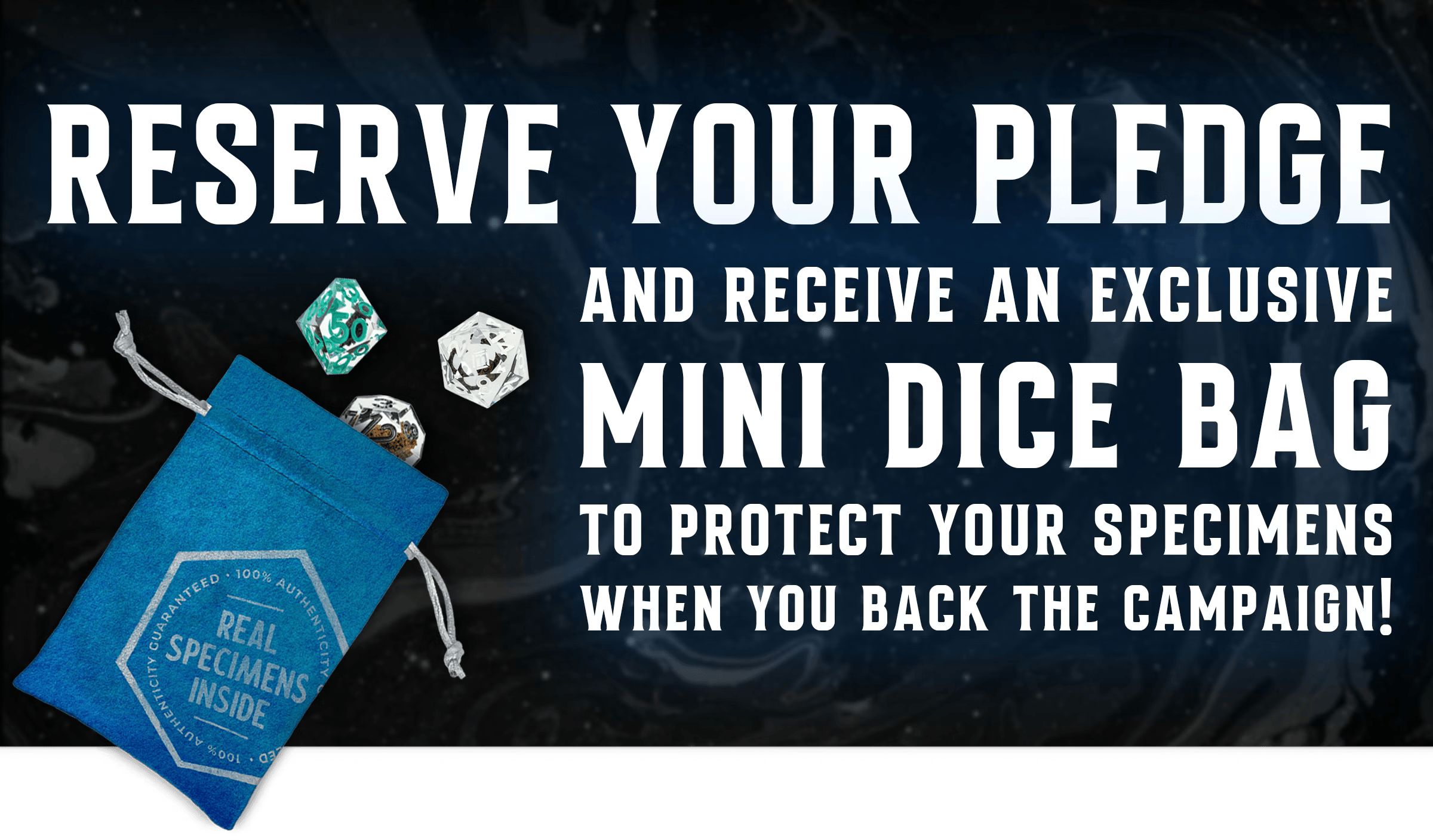 And if you reserve your pledge for $5 now, you'll also receive an exclusive mini dice bag when you back the project! It's designed to help you protect your specimens once they're in your collection