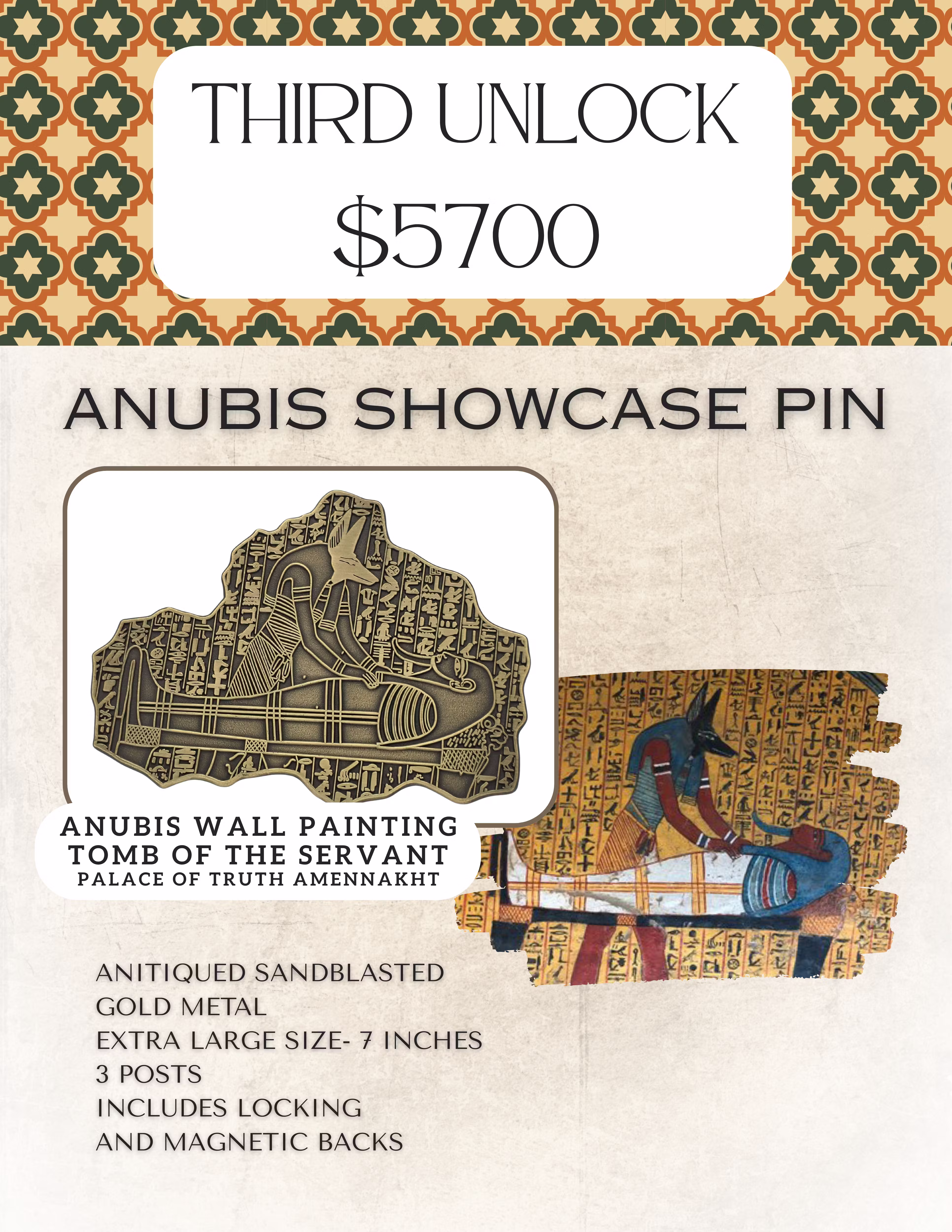 Unlocking at $5700 is a show piece item and also unlocks it's specific solo tier. This piece is based on the tomb of Khaemteri in Egypt depicting Anubis tending to the Pharaoh.