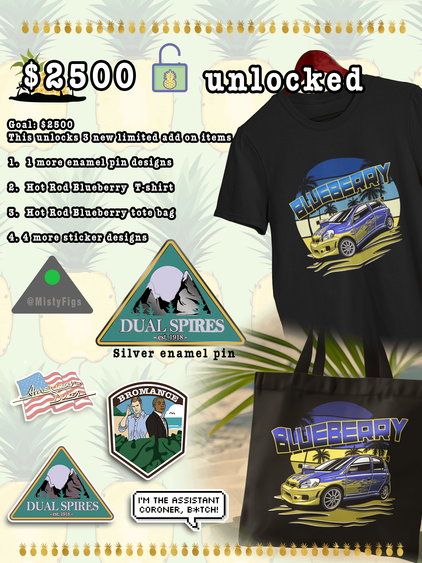 So if you have something in mind, definitely comment and let us know so we can add it to the art list. It may end up a shirt, sticker, or even a pin! We are also only $100 away from the next unlock so share share share!
