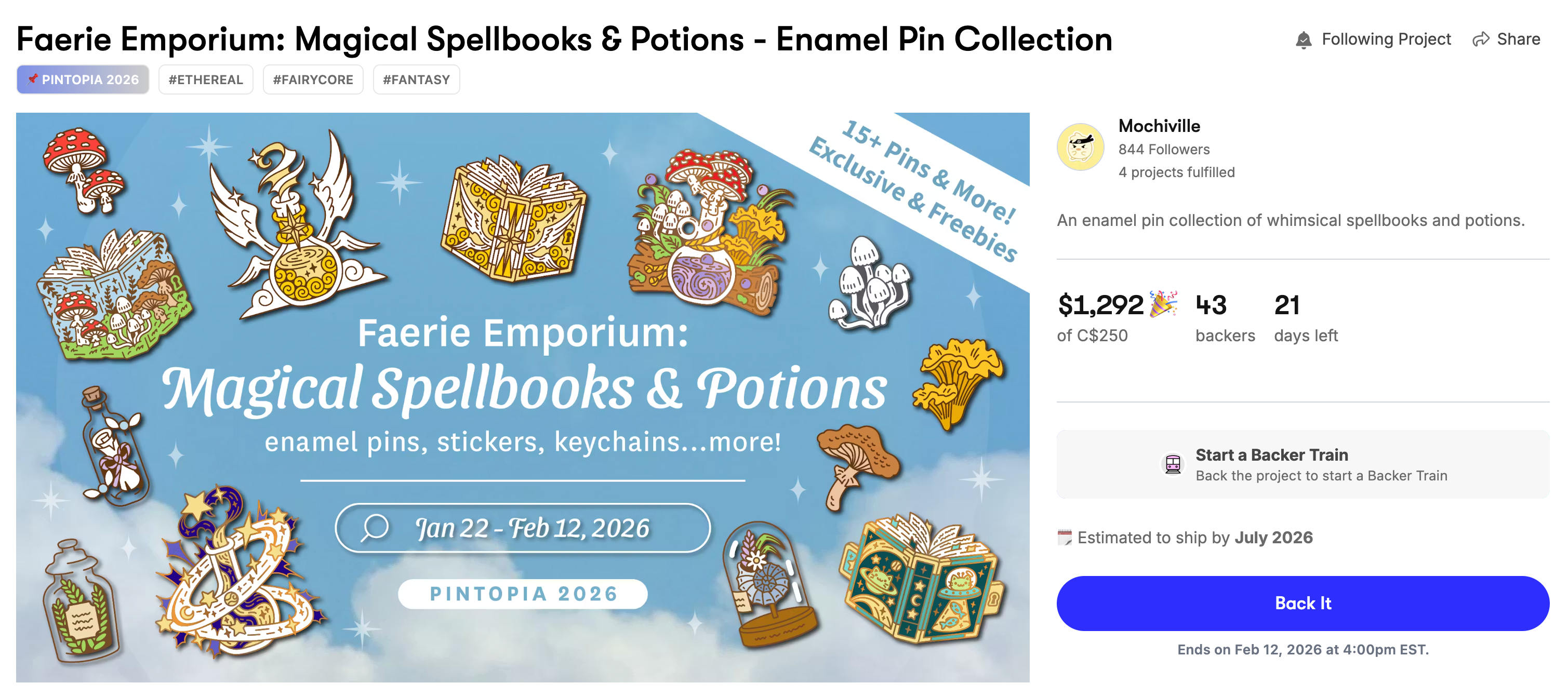The Faerie Emporium: Magical Spellbooks & Potions campaignis now live! We have already reached our initial funding goal within the first half hour, and 5 pin designs have already been unlocked! 😱🎉 Thank you so much for a fantastic start to the campaign ❤️ Our next pin to unlock is the Mushroom Potion pin! 🍄👀