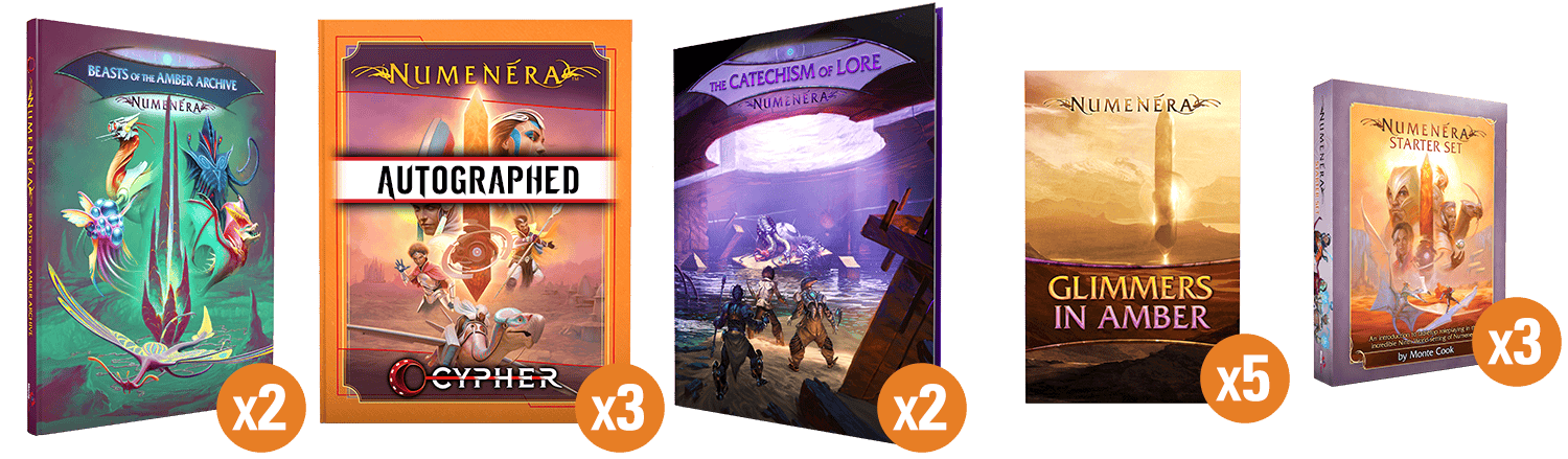 You get three copies of Numenera in the exclusive, backers-only premium edition. This is the only way to get the special edition of these products; only the standard edition will be available through distribution. And it gets even better—your copies will be autographed!