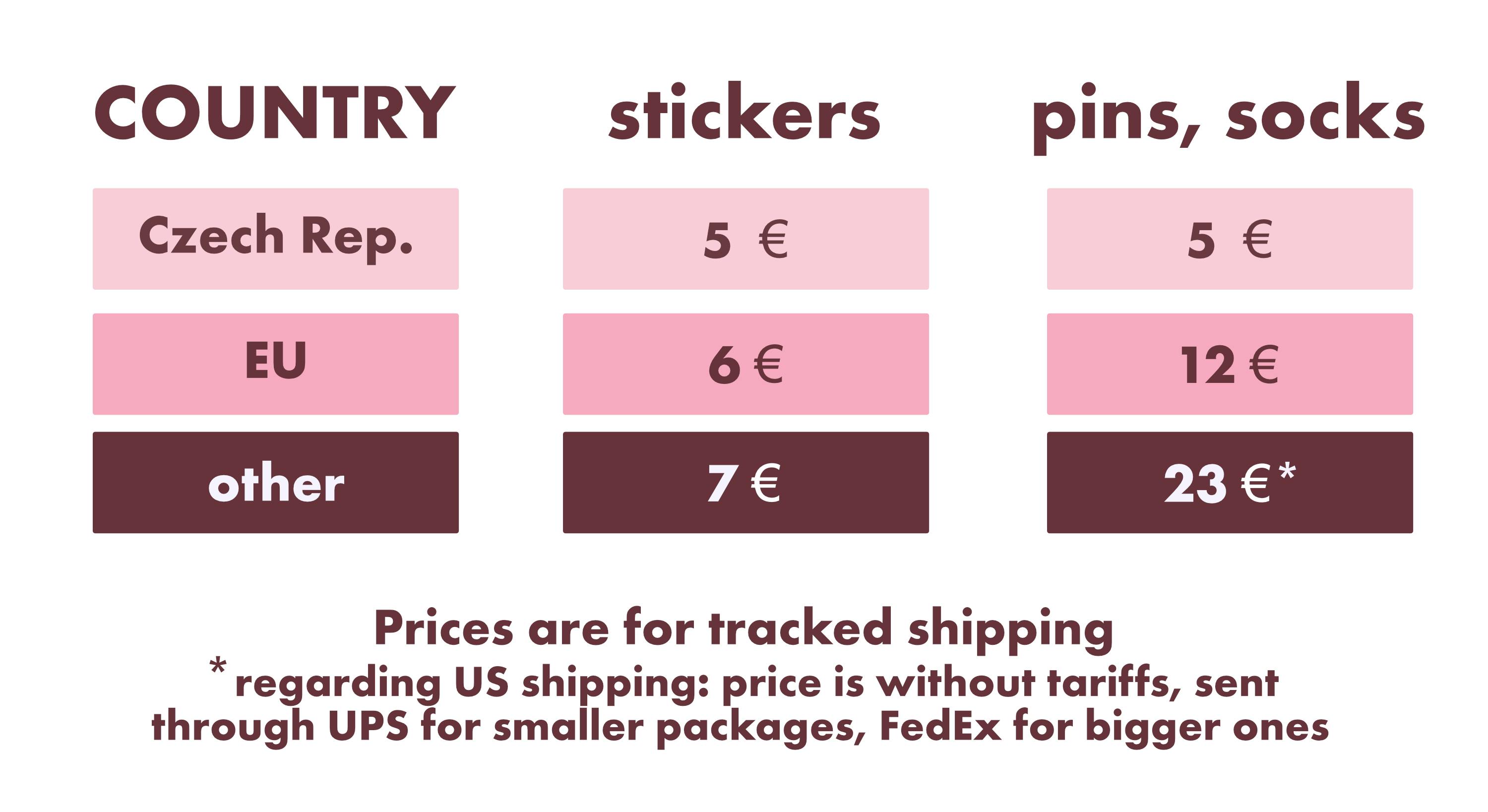 Depending on how many backers this project will receive, there might be slight delays in the fulfillment process as I'll be grading, packaging and shipping all the pins (and add-ons) on my own. By backing this project, you understand that on-time delivery is not 100% guaranteed. There might come an unexpected problem, like a wrong batch of pins. If such a case happens, I will immediately let you know – same with any delays or other problems!