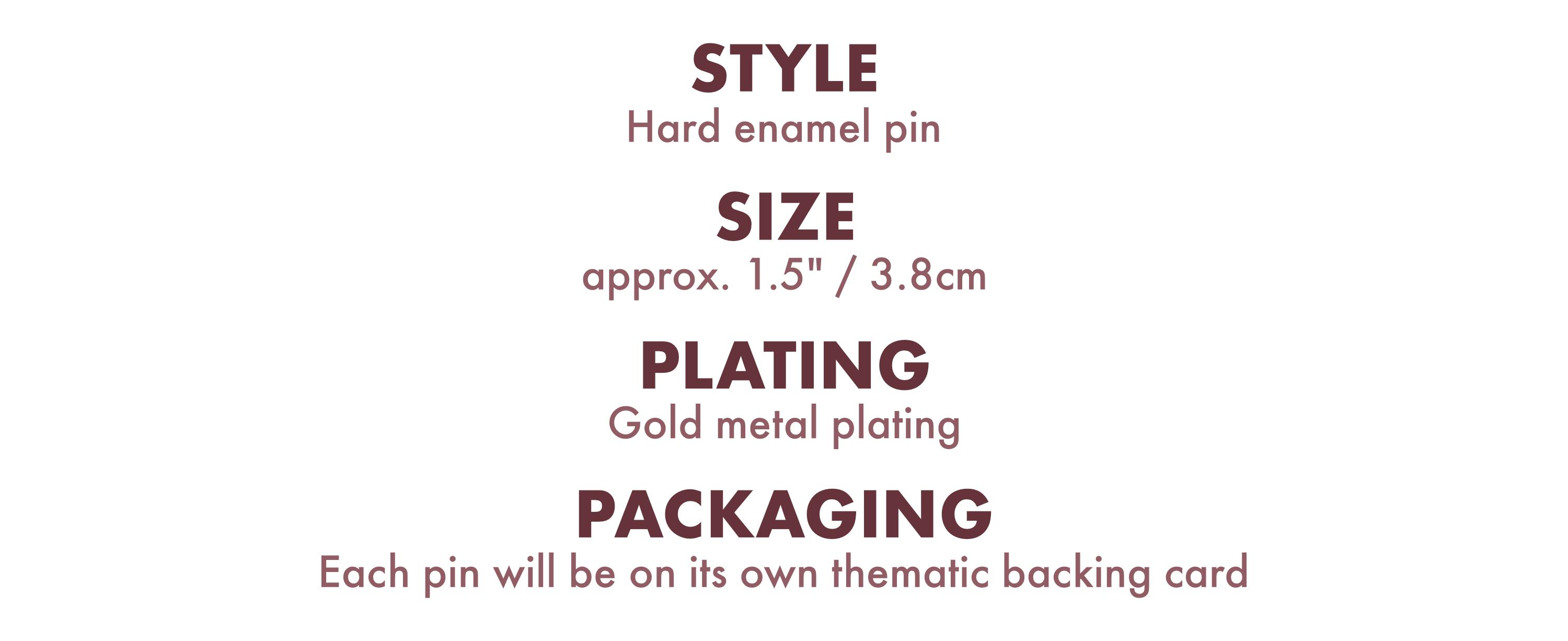 Colors of the pins may differ in person than from photos and your screen – since I need to use Pantone colors for the enamel pins, there will be a very slight color difference. However, from my past experience, I try to match it as much as possible.