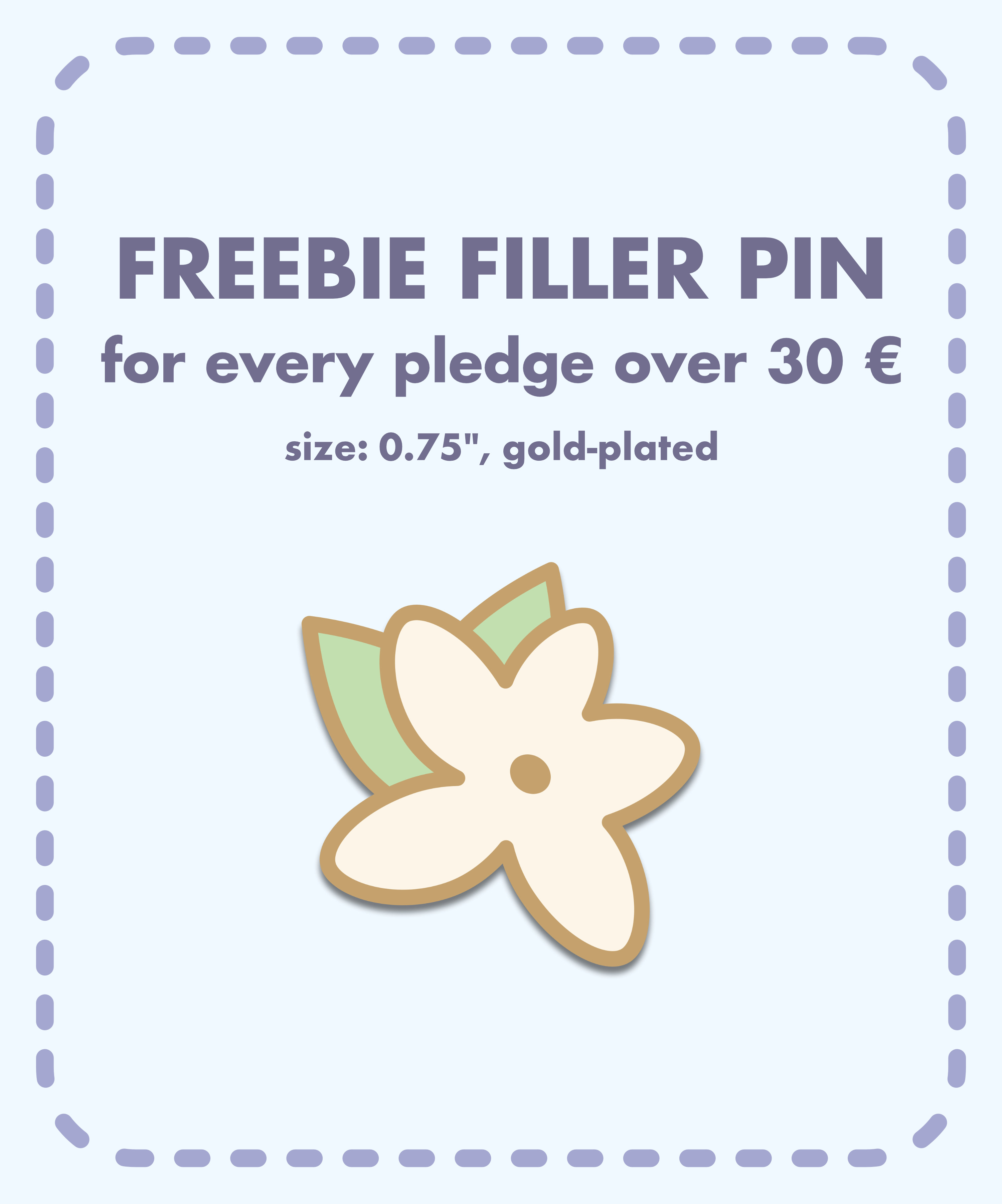 Thank you so much for your support!! When I was considering freebies, I've told myself I want to add a new one if we ever hit 40 backers... which actually did happen today! As my way of thanking you, I am adding a new freebie to the mix – freebie filler pin! However, you can also find this filler pin under filler pin section to add it to your pledge, in case you are not hitting the requirements! ♥ And please, be aware – this pin will be free for pin tiers only (because of the shipping fees)!