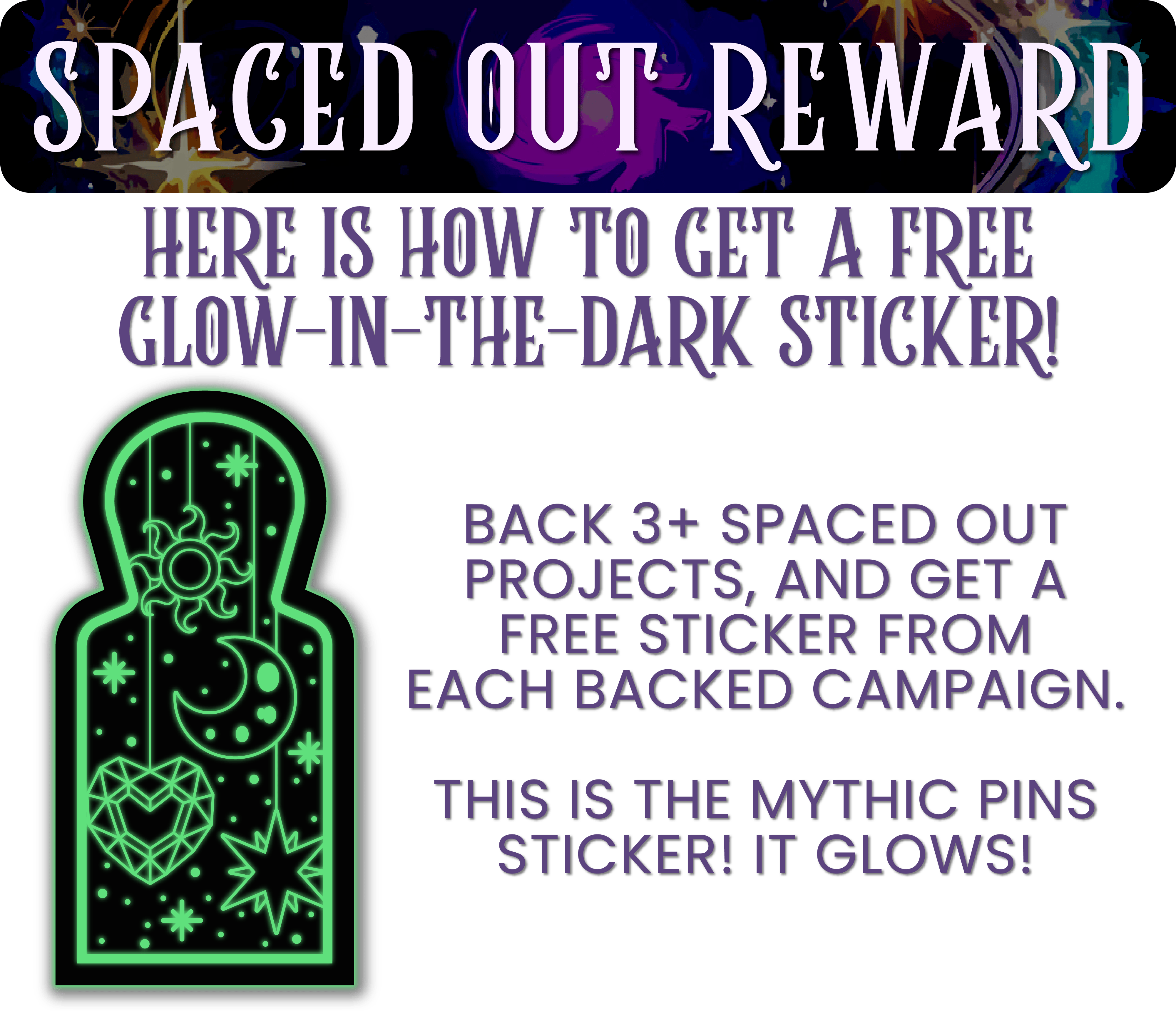 Free Spaced Out Banner Stickers β Back 3 or more Spaced Out banner campaigns to receive one FREE special effect sticker (holographic, glow-in-the-dark, glitter, etc.) from each creator you backed!
