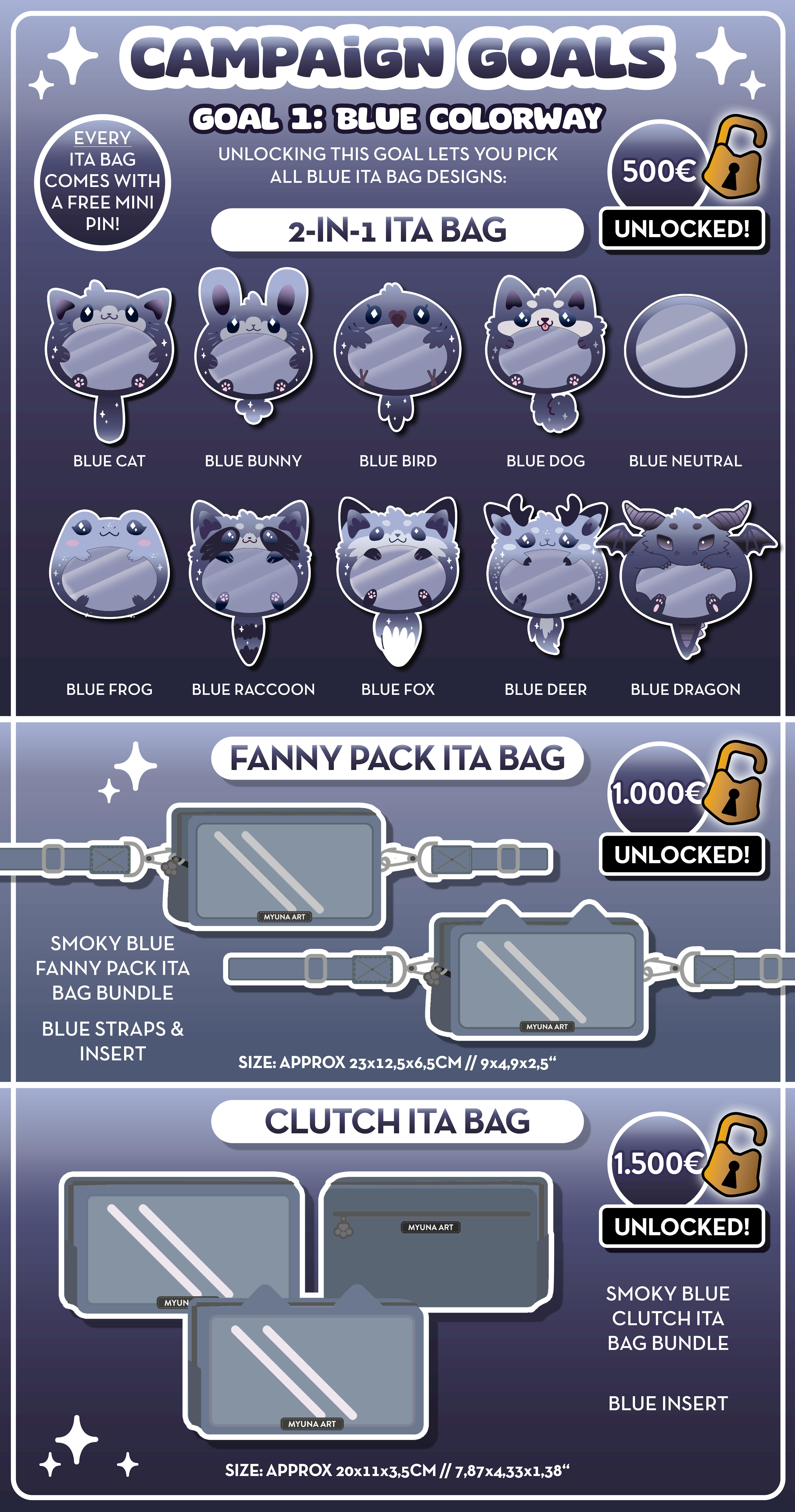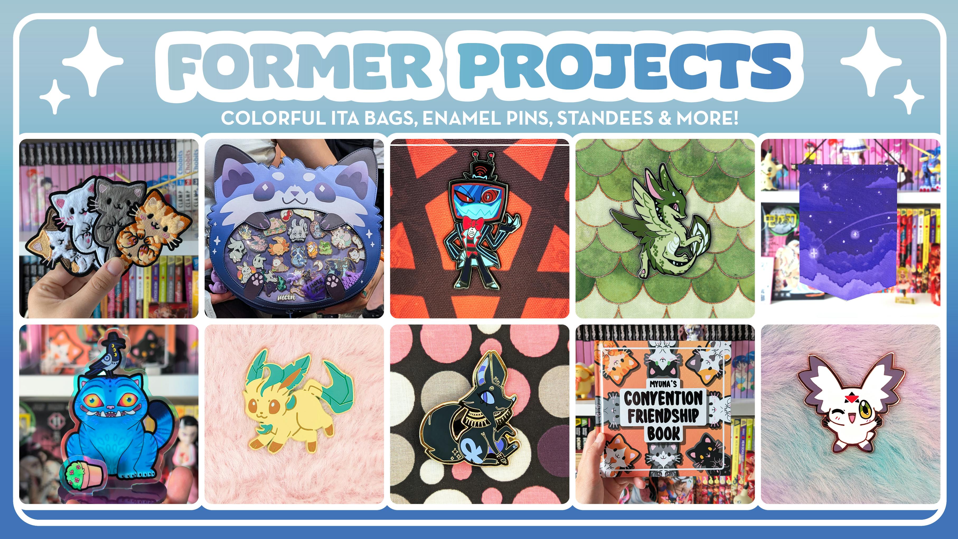 I'm Myuna, a small, independent artist creating pins and visiting conventions since 2018 and have my own online shop. Due to the expensive production of Ita Bags I’m bringing this project to Backerkit to help cover the costs – so I can create a whole set that I couldn't afford on my own. My last ita bag crowdfunding campaign was a huge success with a total of 220+ backers - THANK YOU to everyone who supported me back then!